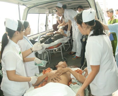 2 người trong số này được chuyển tiếp đến Bệnh viện Chợ Rẫy cho chấn thương quá nặng.