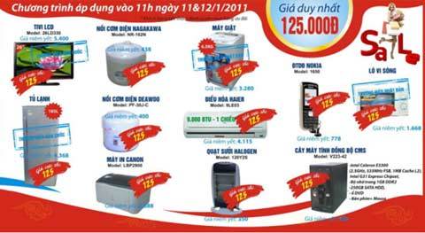 Ngoài ra, Ebest Outlet còn áp dụng chương trình một giá 125.000 đồng. Chỉ với 125.000 đồng, người tiêu dùng đã có thể thoải mái mua được nhiều món đồ mơ ước như tivi, tủ lạnh, máy giặt, lò vi sóng, điện thoại…
