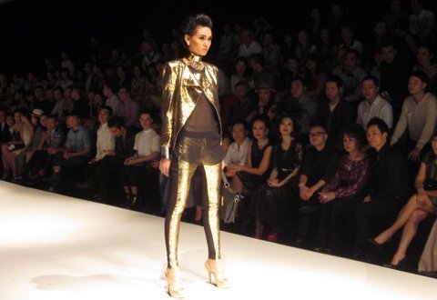 Trong khi đó, Adrian Anh Tuấn ra mắt những bộ trang phục tông vàng đồng. Đỗ Mạnh Cường mang chất liệu ren vào các thiết kế, tôn vinh nét nữ tính, kỹ thuật thủ công tỉ mỉ của chất liệu này cùng sự gợi cảm của người mặc.