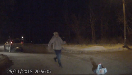 Một bà mẹ người Nga đã tất cả dừng ô tô nhảy xuống bế đứa con nhỏ sau khi cửa ô tô bật mở và nó bay khỏi xe xuống đường.
