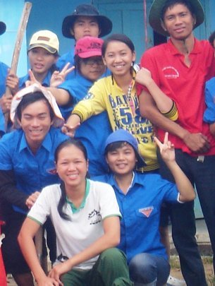 | Thiên Trang (hàng ngồi, áo trắng) trong một chuyến đi tình nguyện (Ảnh: TTO) |