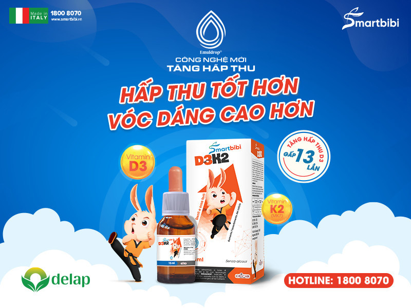 Chi tiết liên hệ: https://www.smartbibi.vn/san-pham/smartbibi-d3k2/ TPBVSK Smartbibi D3K2 không phải là thuốc, không có tác dụng thay thế thuốc chữa bệnh. |