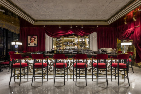 Travel + Leisure said that the bar is decorated with trunks, opera costumes, and antiques reminiscent of those lavish spaces where artists would gather to apply makeup or to relax in preparation for their performances during the 19th century's golden age of opera.
