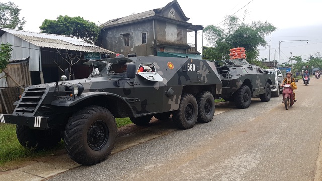 Meanwhile, the other group deployed by the provincial police is using canoes and boats to cross the Huong Dien hydro-power reservoir to approach the Rao Trang 4 hydropower plant to deliver relief goods and transport stranded workers out of the site.