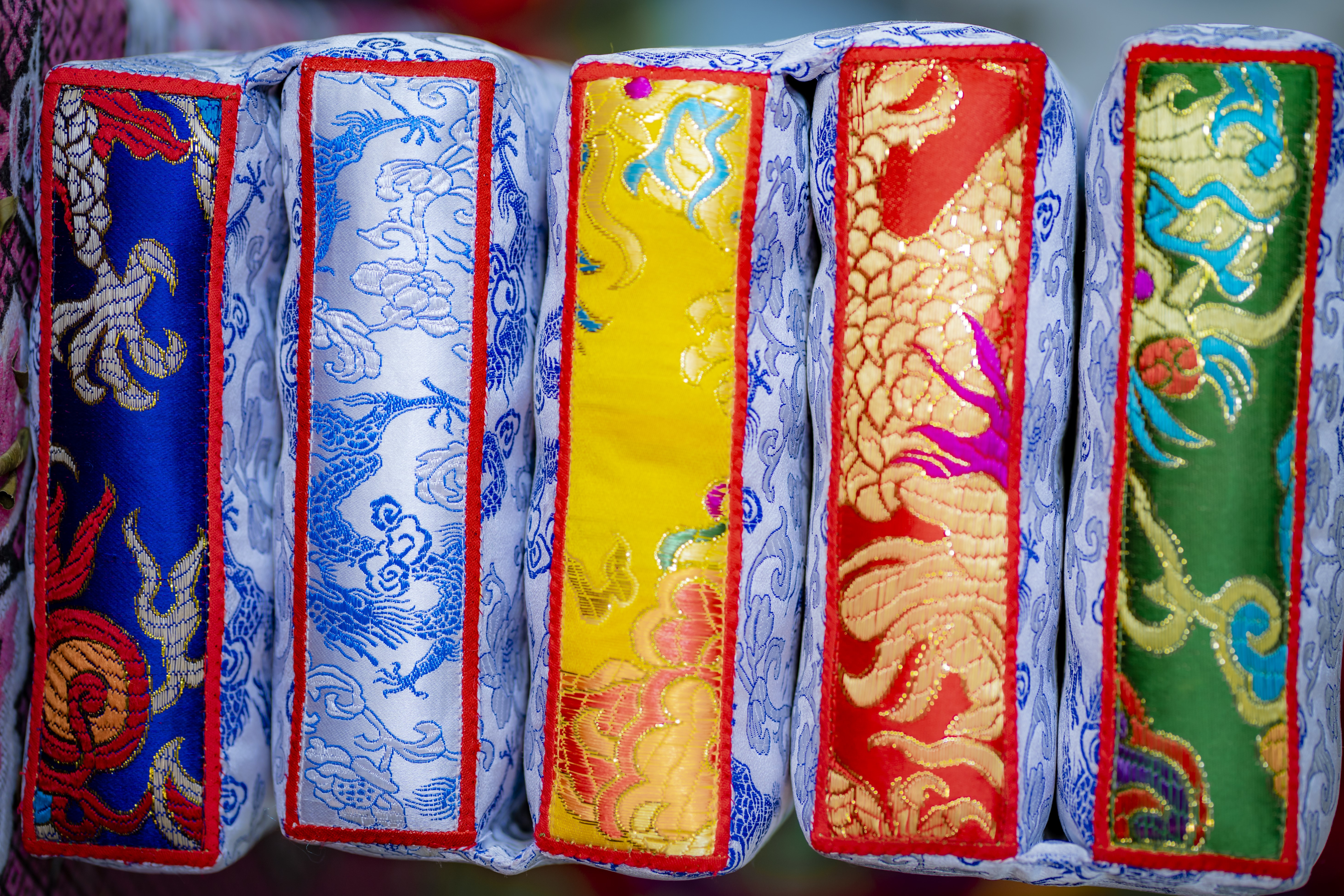 The traditional pillow products from Tri Hur are diverse in color, with bold patterns of palace culture.