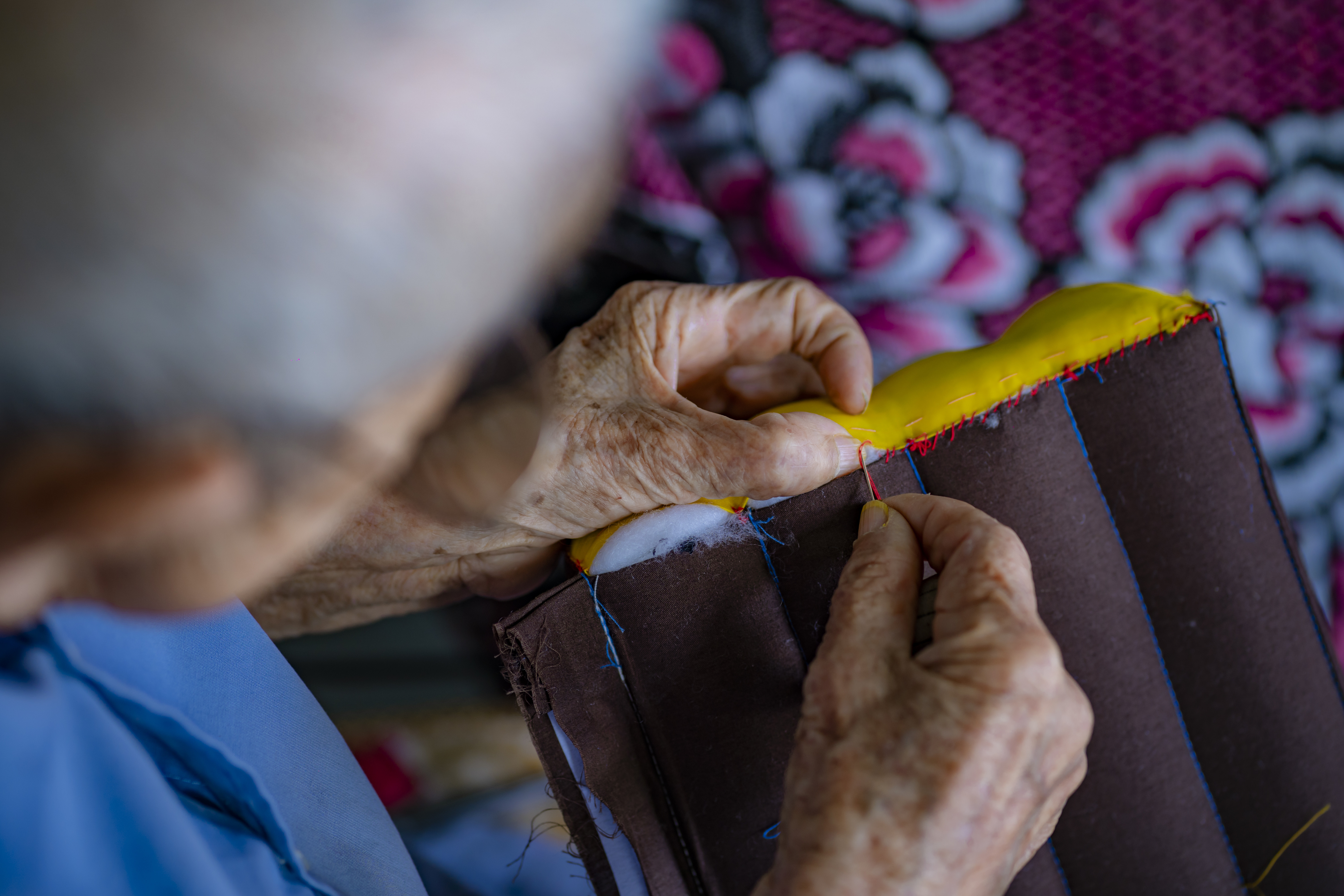 Most stages of pillow making are carefully handcrafted by Tri Hue. But the sewing stage of the pillow cover has been replaced with a sewing machine in recent years.
