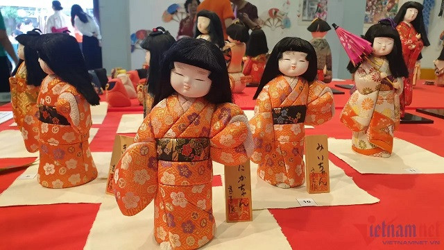 The display is part of the Vietnam Women's Museum’s “Welcome Summer with Japanese Culture” event, which includes a series of activities focusing on the typical cultural features of the country of the rising sun such as display and introduction of traditional Japanese dolls; Ikebana flower arrangement display and experience; Wagashi cake making experience; Yukata wearing experience; and origami paper folding.