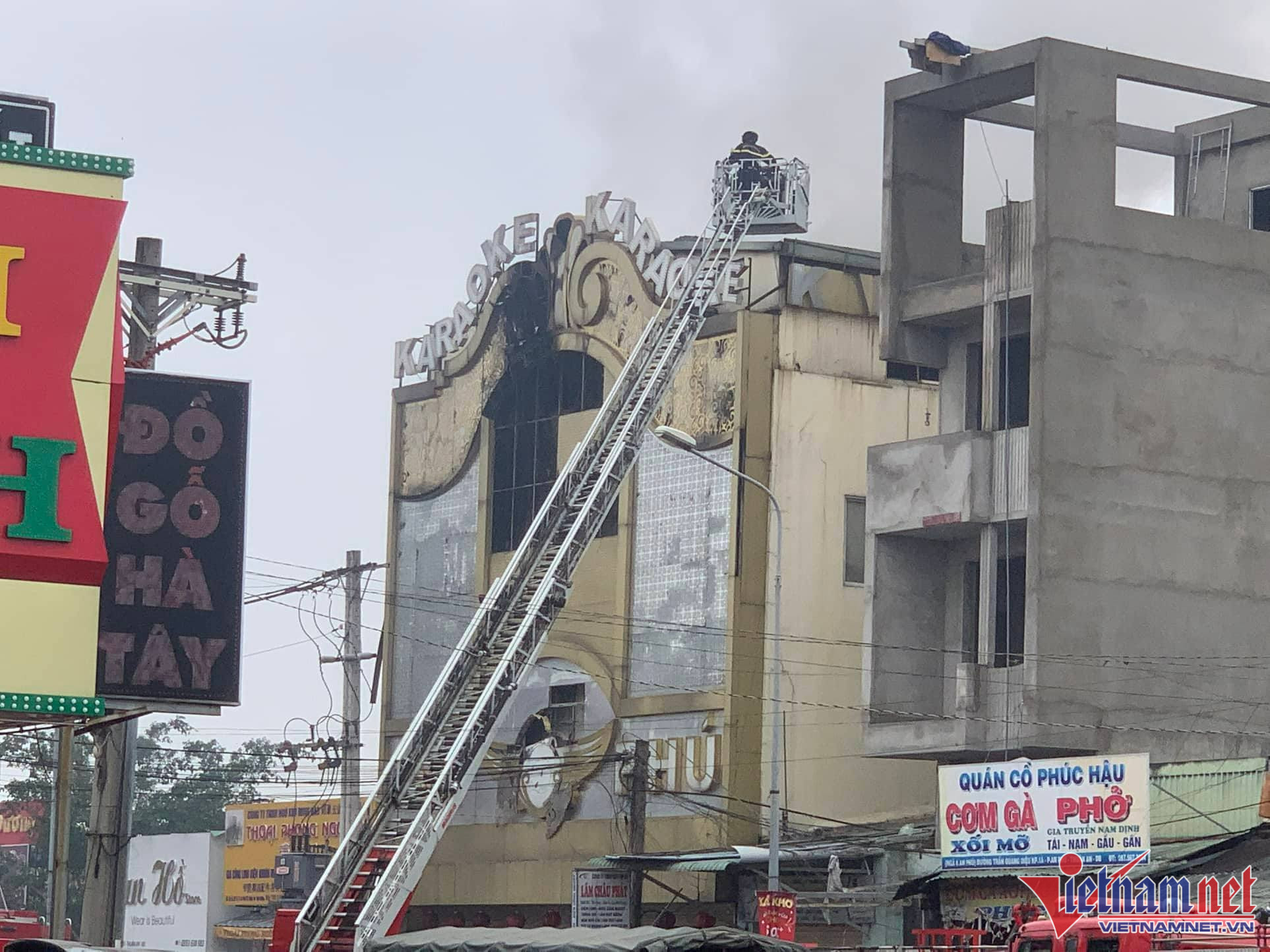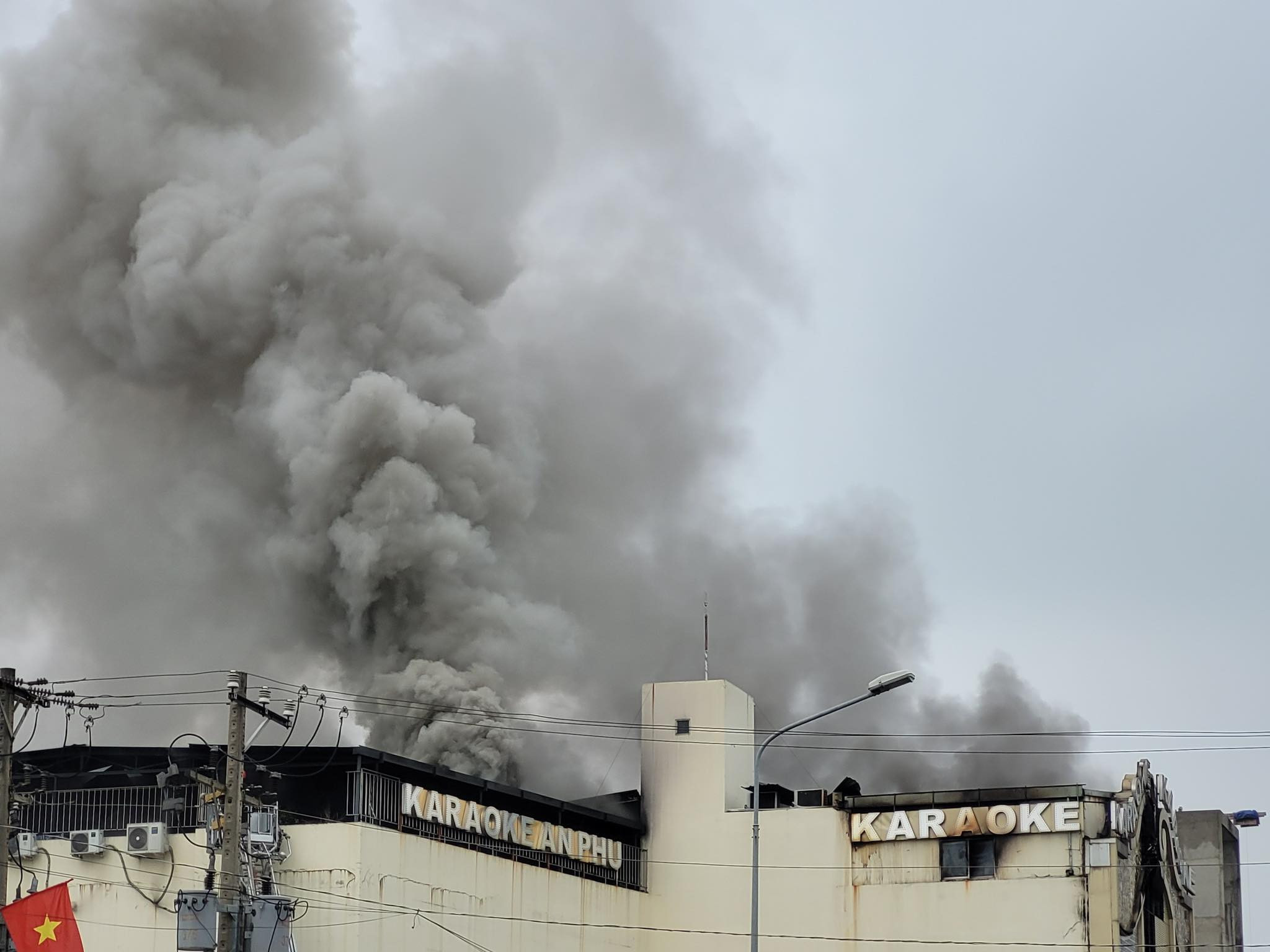 The fire broke out at the An Phu karaoke bar on Tran Quang Dieu Street, Thuan An City, at a round 9pm. The fire raged so violently on the upper floor that some staff and guests singing in the bar could not escape the bar. Many were trapped inside, said people who managed to get out of the burning bar. Some jumped out to escape the fire and they suffered injuries.
