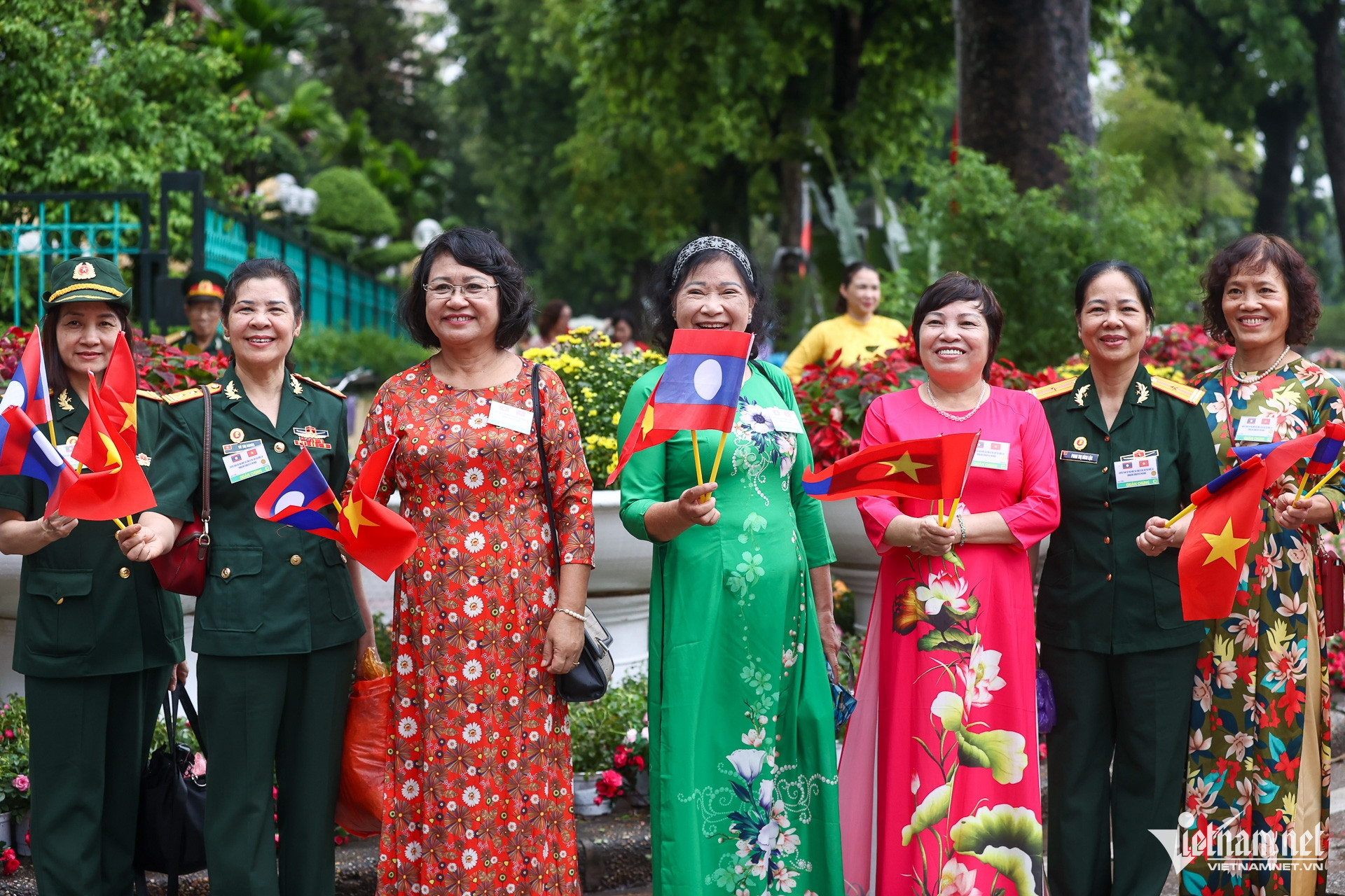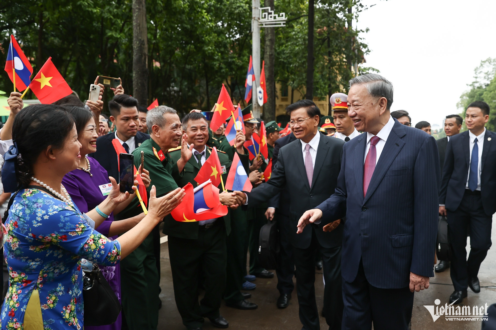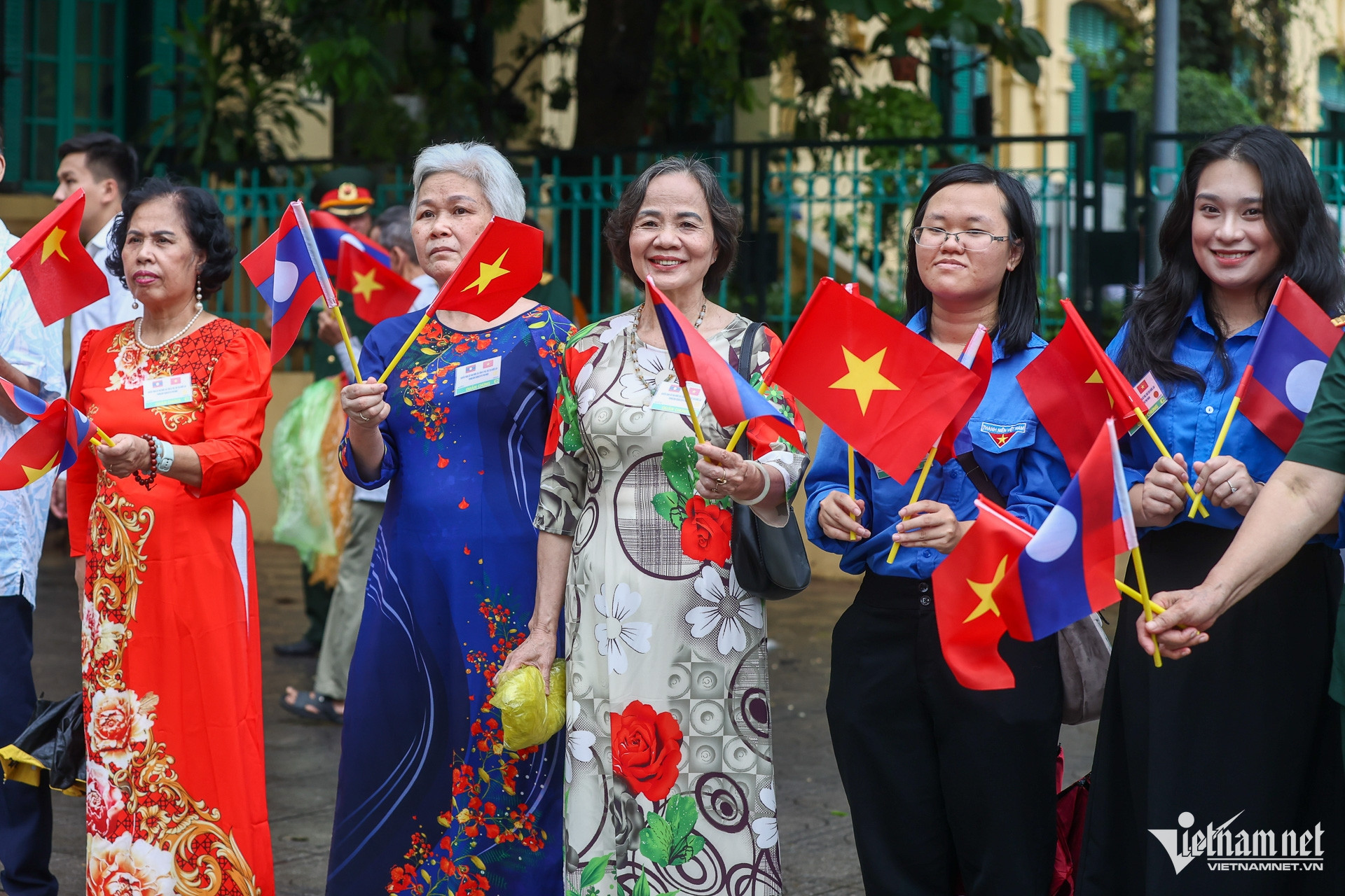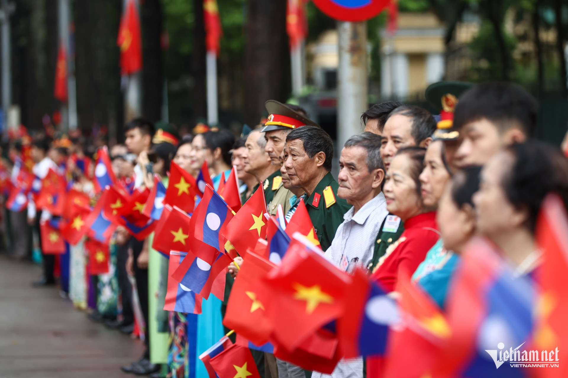 After the official welcoming ceremony, the leaders and delegations proceeded to the headquarters of the Central Committee of the Communist Party of Vietnam for a formal meeting. As they walked along Hung Vuong Boulevard, the streets were adorned with the national flags of Vietnam and Laos, while the citizens of Hanoi warmly greeted the leaders with cheers of "Vietnam-Laos forever!" and "Vietnam-Laos samaki!" (solidarity).