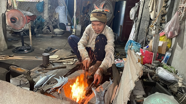 Blacksmith Nguyễn Đô, 61, believes that although the golden age of the forging village has passed, the spirit of craftsmanship still blazes on.