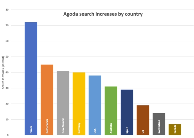 Leading the way are French tourists, who delivered an incredible 72 per cent surge in accommodation searches in the fortnight after the announcement compared to the preceding two weeks.