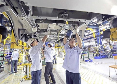 Workers assemble a car at Ford Viet Nam's Hai Duong assembly facility. — VNA/VNS Photo Tran Viet