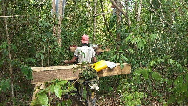 Loggers are seen destroying trees and transporting wood out of a forest in Gia Lai Province