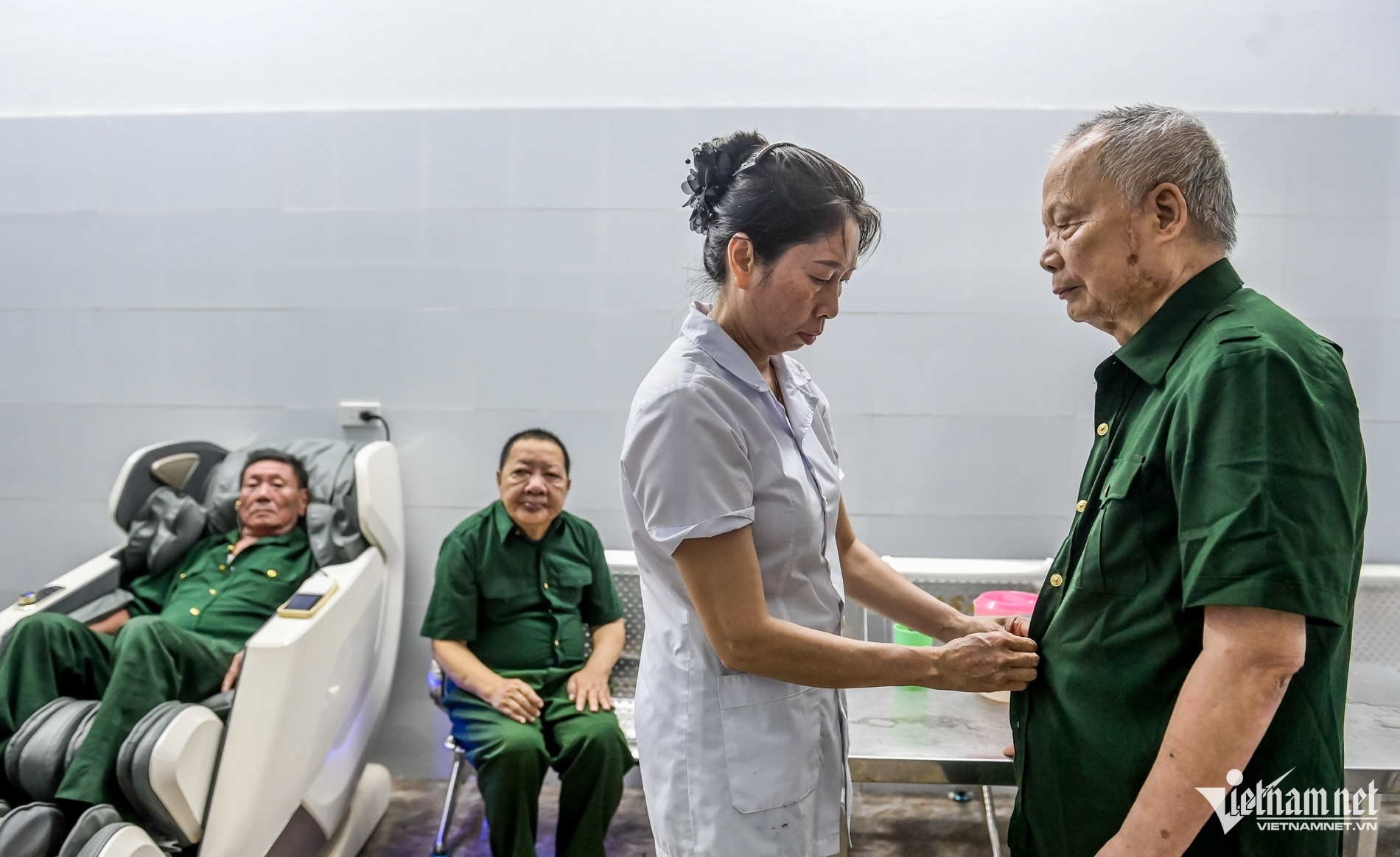 Years of persistent pain have caused mood swings and fits of rage. Yet in lucid moments, Luyen greets fellow veterans with a salute, engages in conversation, and often bursts into patriotic songs like “As if Uncle Ho were here on the day of great victory.” He’s especially fond of physical activity and enjoys exercising with comrades.