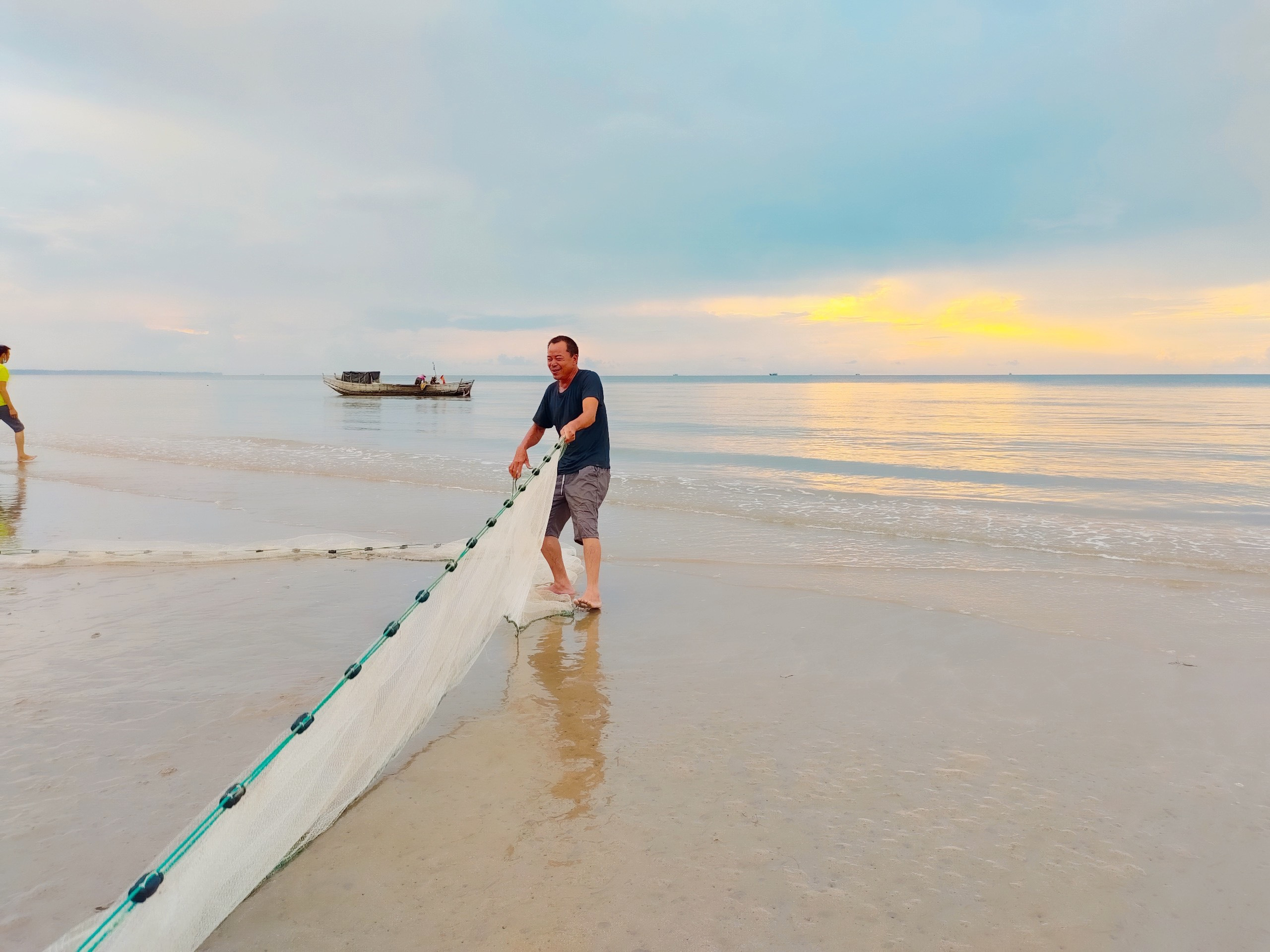 Van Don - Mong Cai highway has helped shorten the travel time from Hanoi to Mong Cai to just over three hours instead of six hours as before, creating favorable conditions for tourists to explore this border city. (Photo: Hoang Ha)Referring to Mong Cai, tourists often think of Tra Co beach. However, besides Tra Co, the 7km-long Binh Ngoc is a very beautiful beach in Mong Cai, which still retains the wild, poetic and peaceful features. In Binh Ngoc, visitors can cycle on the coastal road, which is called "the most poetic road in Mong Cai".To the east, at the foot of Ngoc Mountain, an arch is formed with beautiful scenes such as Da Den, Vung Che, and Ngoc Son beaches. Da Den (black stone) with many black stones is nestled at the foot of Ngoc mountain, with a long sloping sandy beach. The water is so clear that one can see the bottom.An interesting activity that tourists should try in Binh Ngoc is being "a fisherman" for one day. This tour is offered by local authorities at Huynh Chim restaurant. Tourists do not take a boat to fish, but walk on the beach to catch fish, at a depth of about 1m. With the guidance of local fishermen, visitors learn how to cast nets and fish in the traditional way and receive instructions on avoiding areas with the possibility of mudslides, subsidence, or areas with pits or rocky rapids.After catching fish, visitors use fish for delicious dishes , and then enjoy seafood in the manner of the local people.