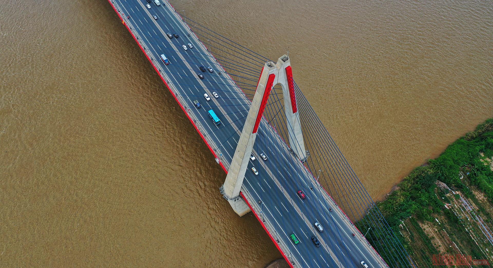 Chuong Duong Bridge (low) and its senior Long Bien Bridge.