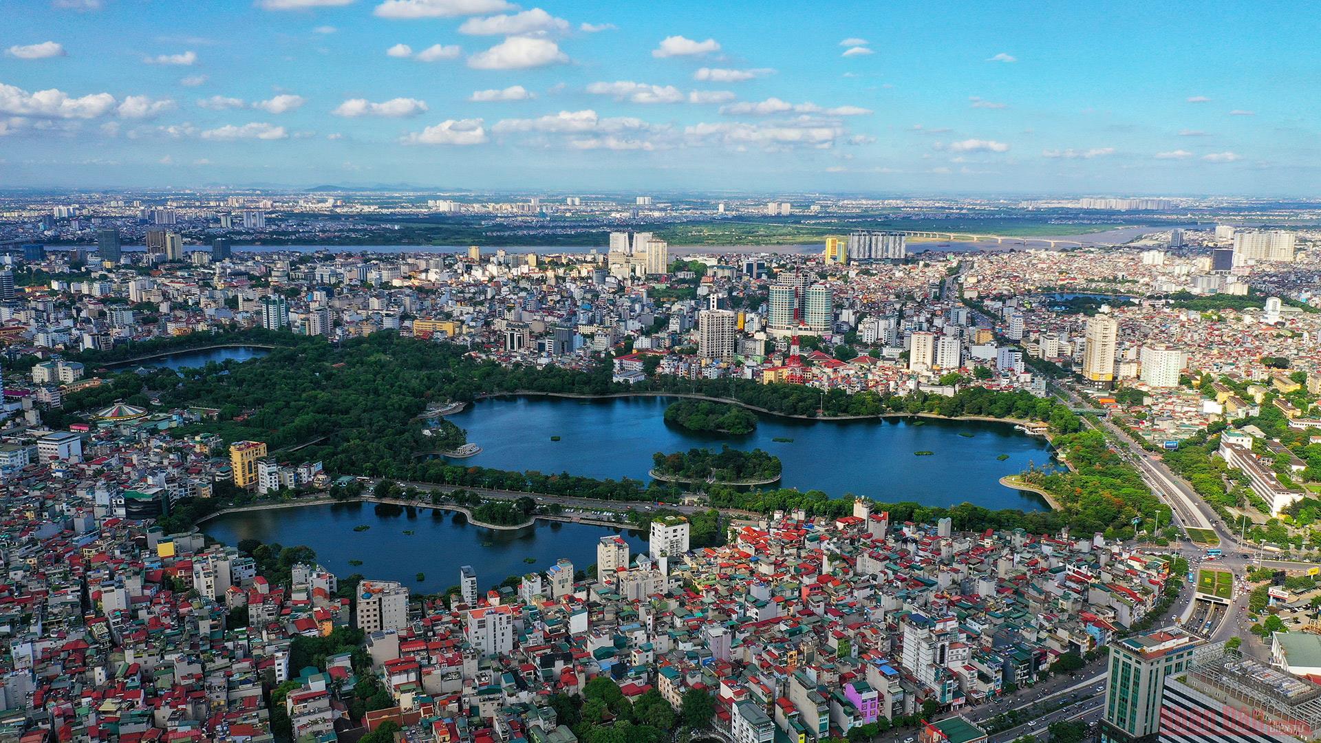 | Hanoi’s Sword Lake looks different in an aerial view. (Photo: NDO/Le Viet) |