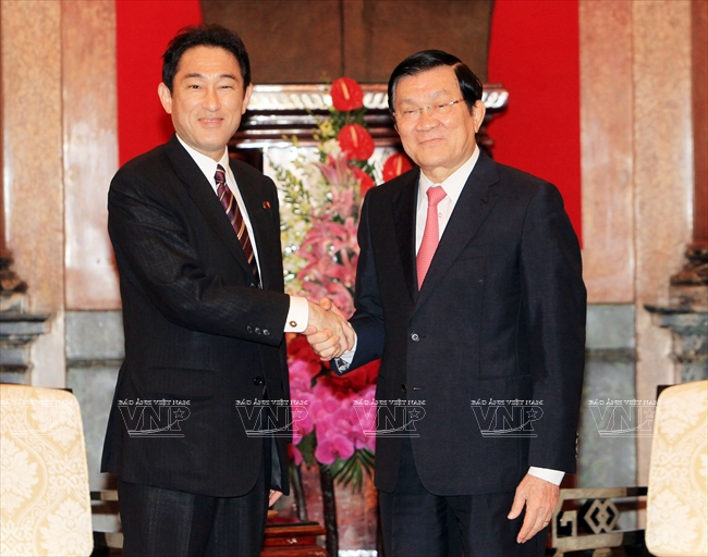 State President Truong Tan sang received Japanese Foreign Minister Fumio Kishida (August 2014).