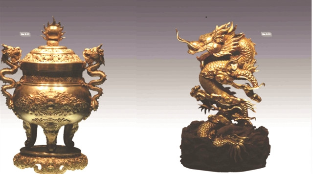 | A gold censer (left) and a gold dragon figurine during the reign of King Thiệu Trị, 1842 (from RACND Collection). Photos from the Vietnam Visual Arts in History, Religion and Culture |