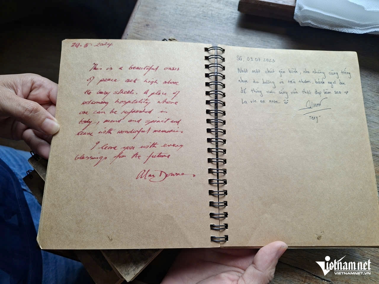 A collection of handwritten notebooks filled with reflections, thank-you notes, and shared memories from past visitors speaks to the café’s emotional resonance.