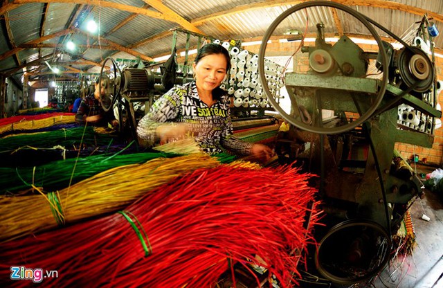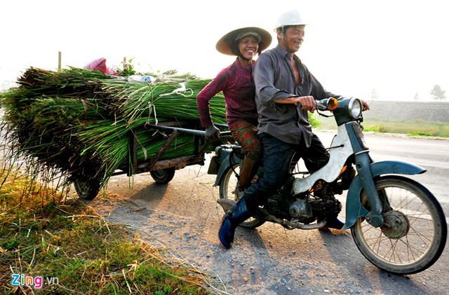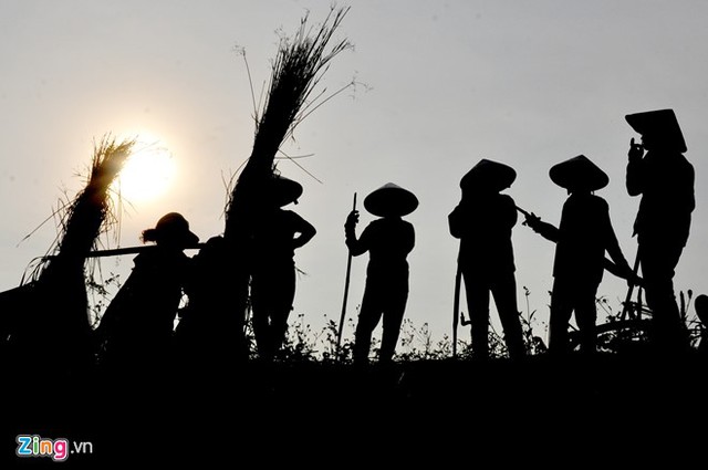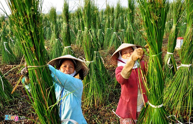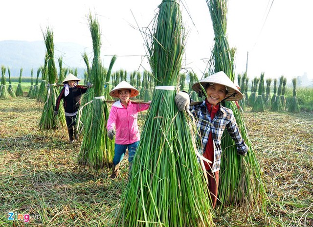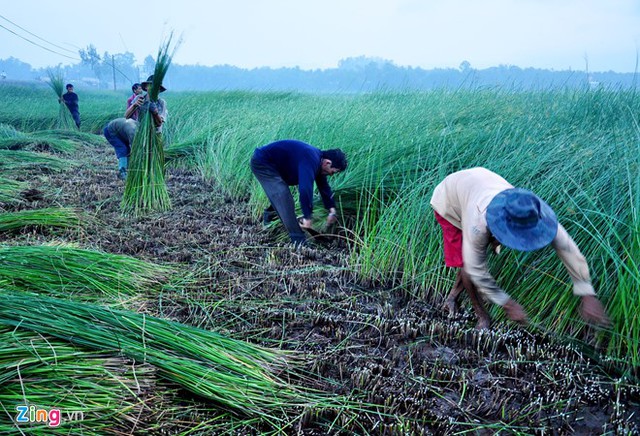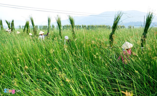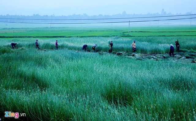 VietNamNet Bridge - In fog, people in Hoai Chau Bac commune, Hoai Nhon district in the central province of Binh Dinh work in sedge fields, creating a beautiful countryside picture.
