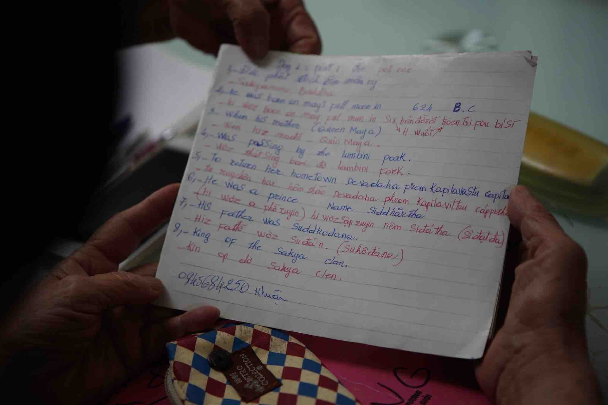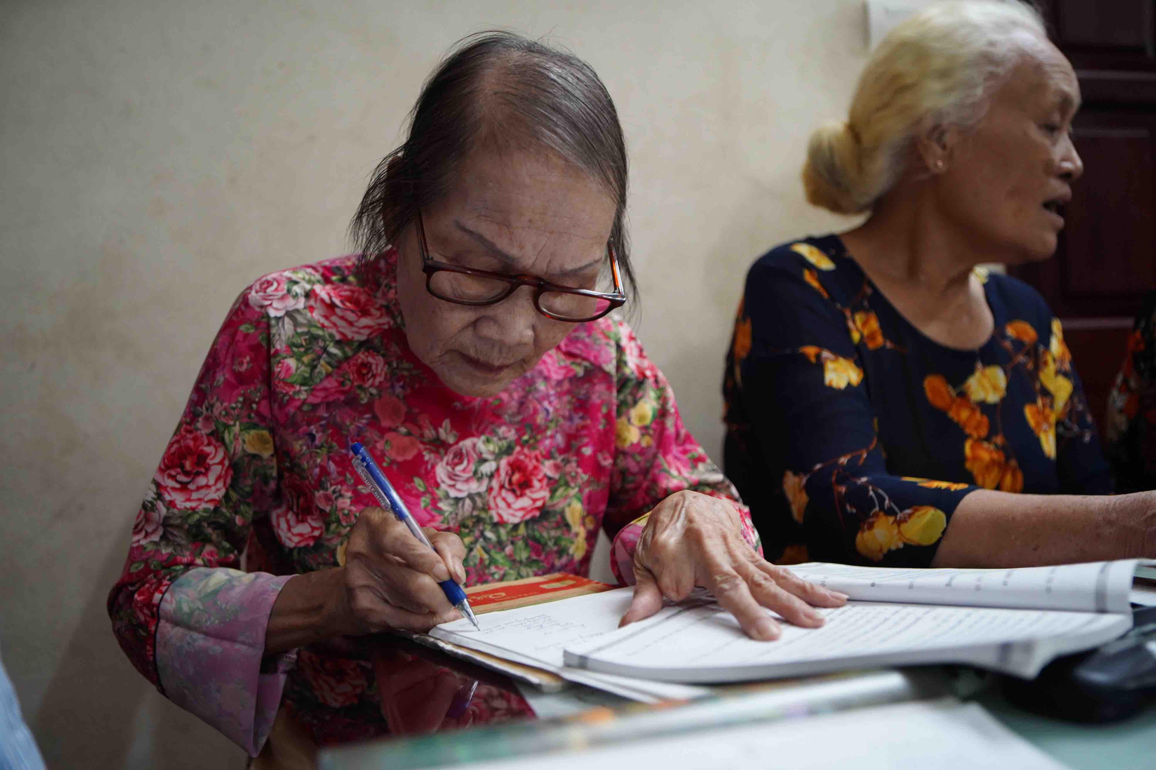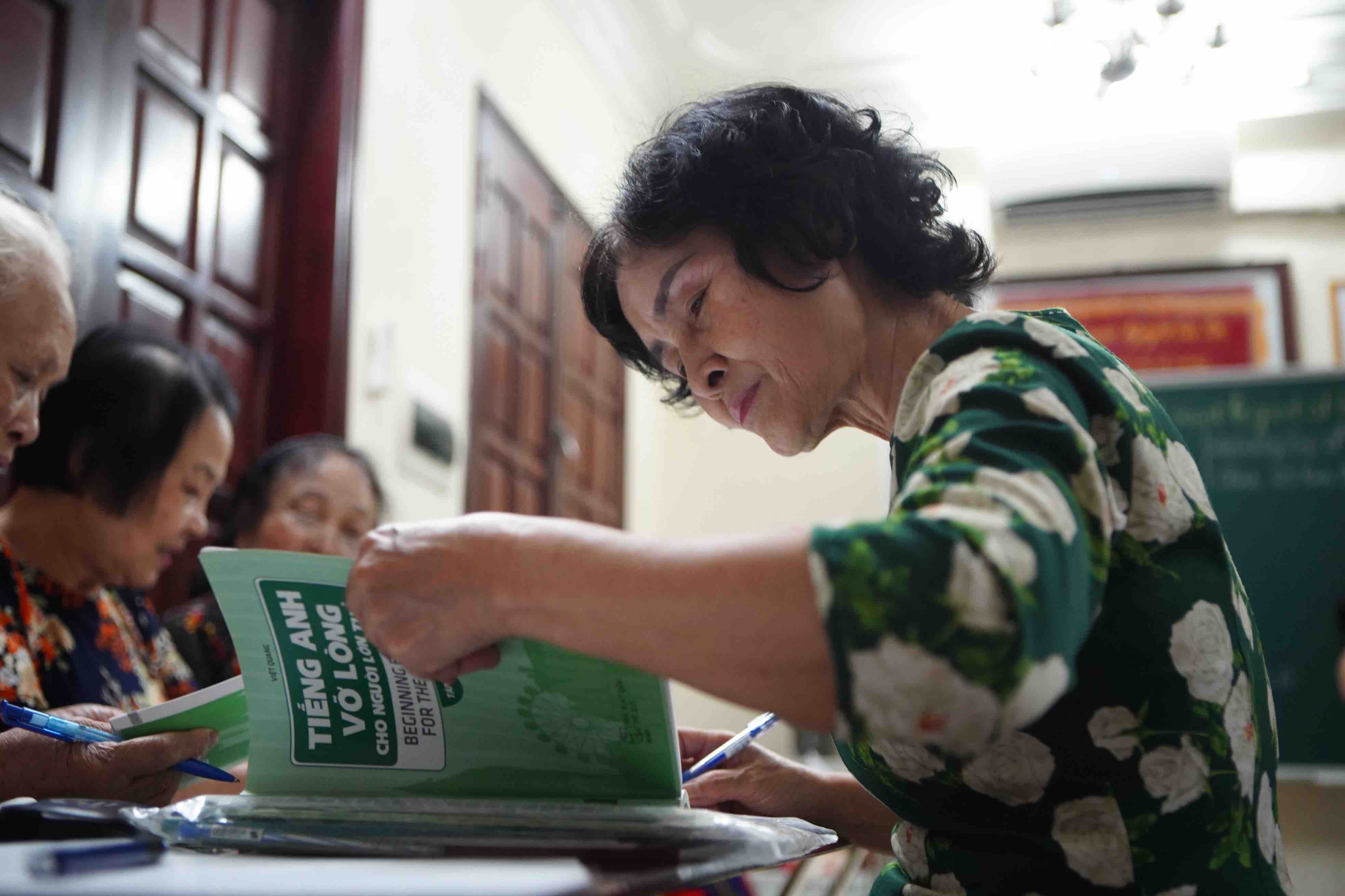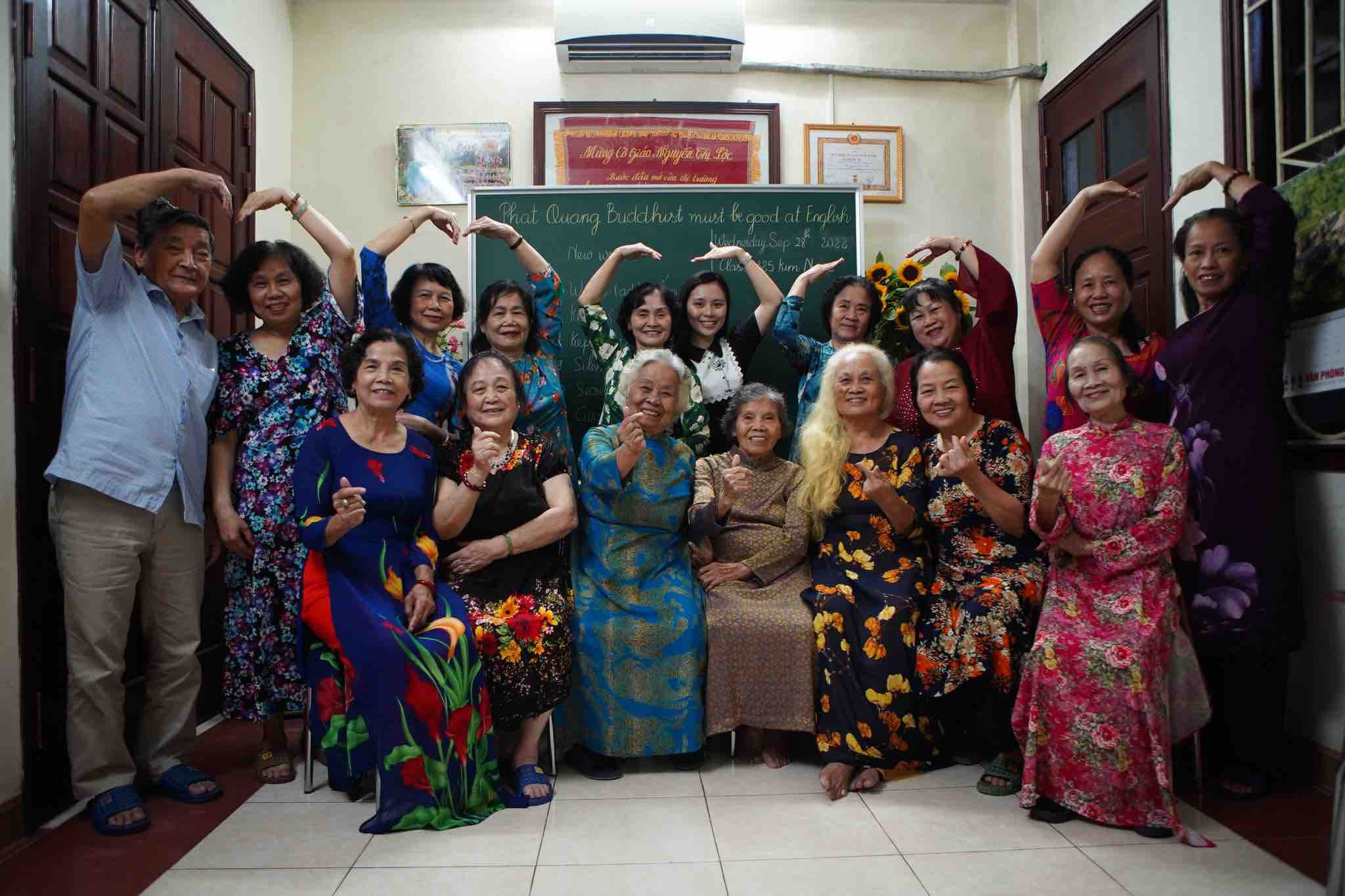 Located in a small alley on Kim Nguu Street, this class opens once a week.Most of the students are retired.Women come to class in ao dai (Vietnamese traditional gown) as a way to show their respect to teachers and remind them of their days in school.Their eagerness to learn as well as the lively atmosphere in the classroom impresses young people.Although the acquisition of vocabulary is limited, teachers are very enthusiastic.Some days the class lasts for over 2 hours, but students learn a few words.This is not only a classroom but also a family.An older man who lives nearly 10km from the classroom has never skipped a class.The students diligently take notes throughout the lesson.Mrs. Nguyen Van Anh, 82, is the only male student in the class. He said the class is special in that free books are provided, and the teacher enthusiastically helps retirees like him and his wife find joy in their old age.The free English classes were founded by Venerable Thich Chan Quang in 2019 in many provinces and cities across the country, with the hope of providing joy, motivation, and a sense of community.