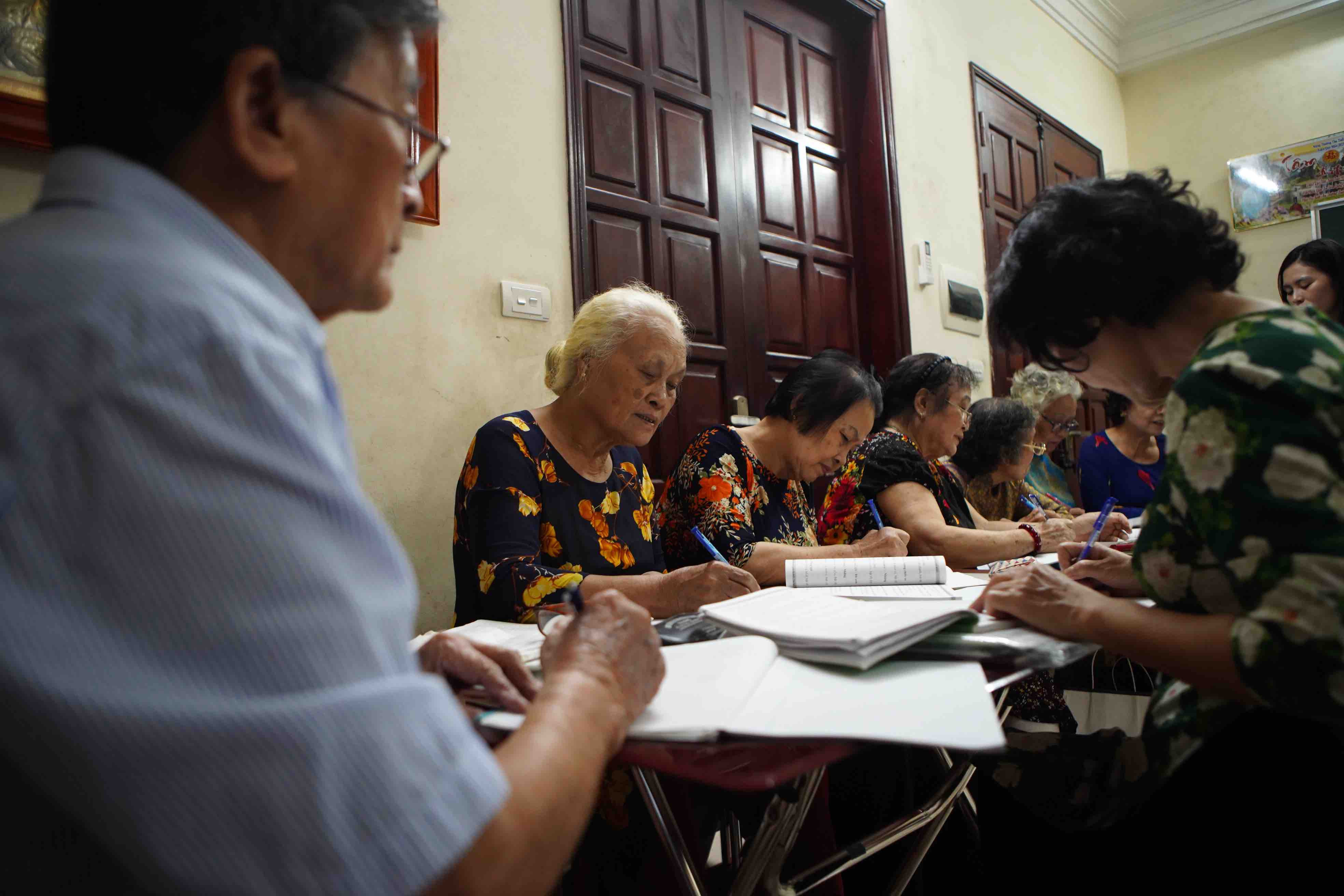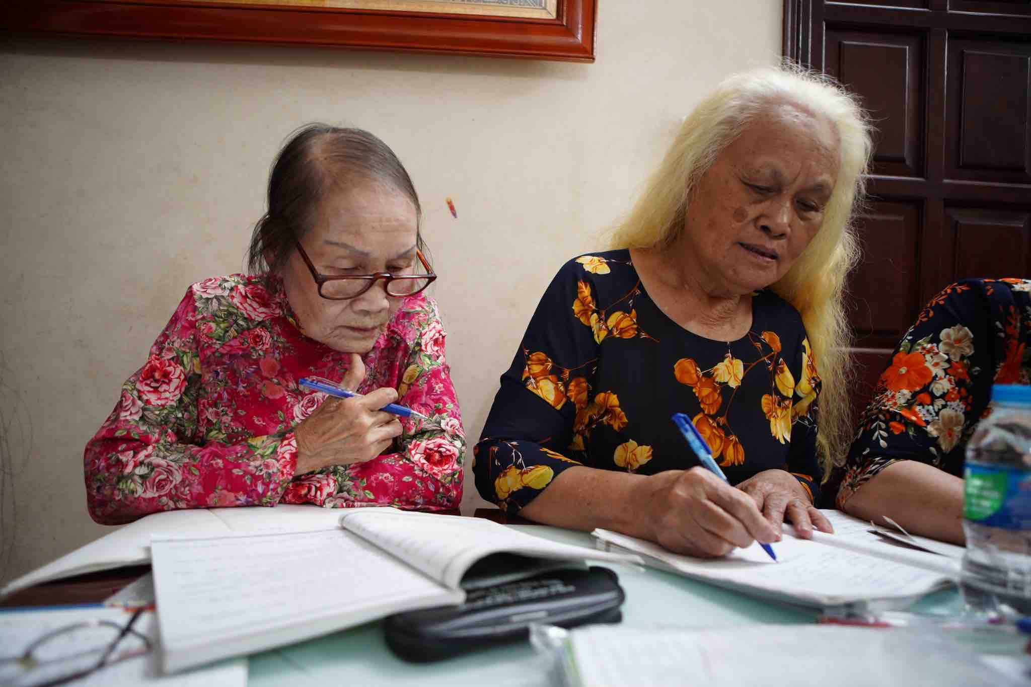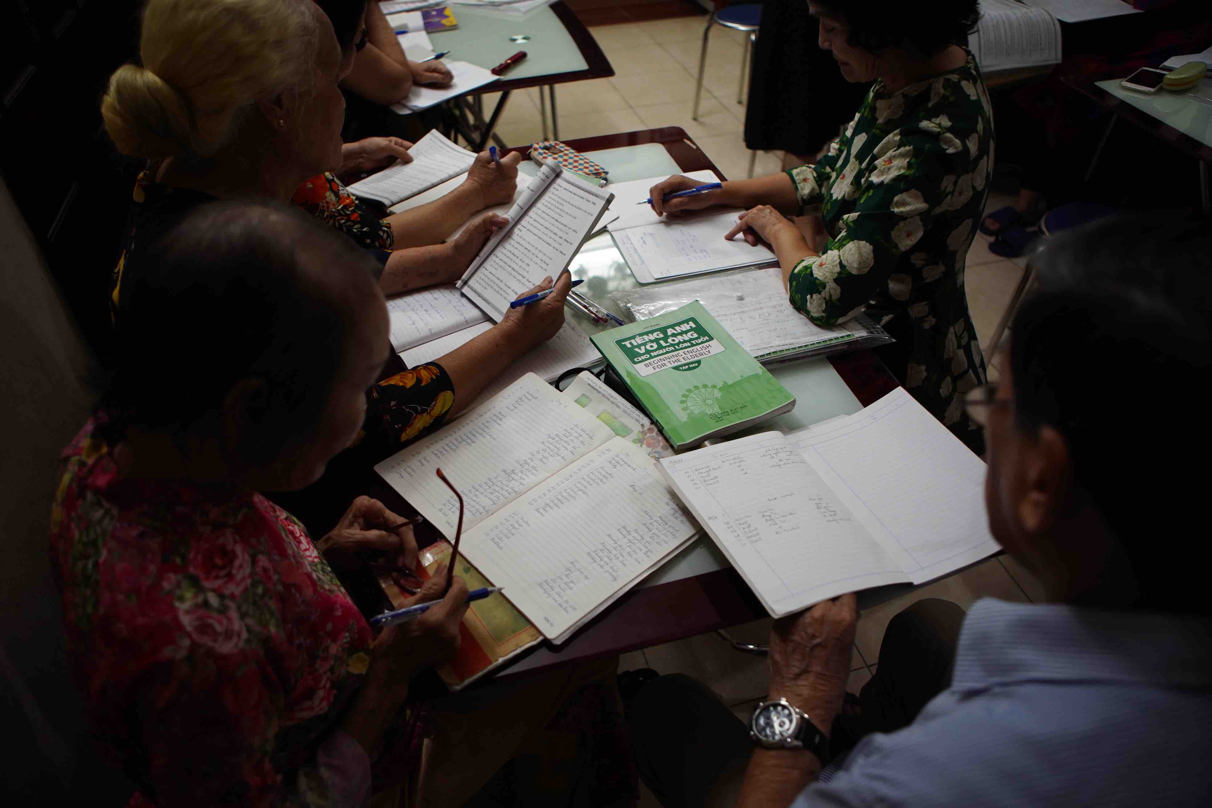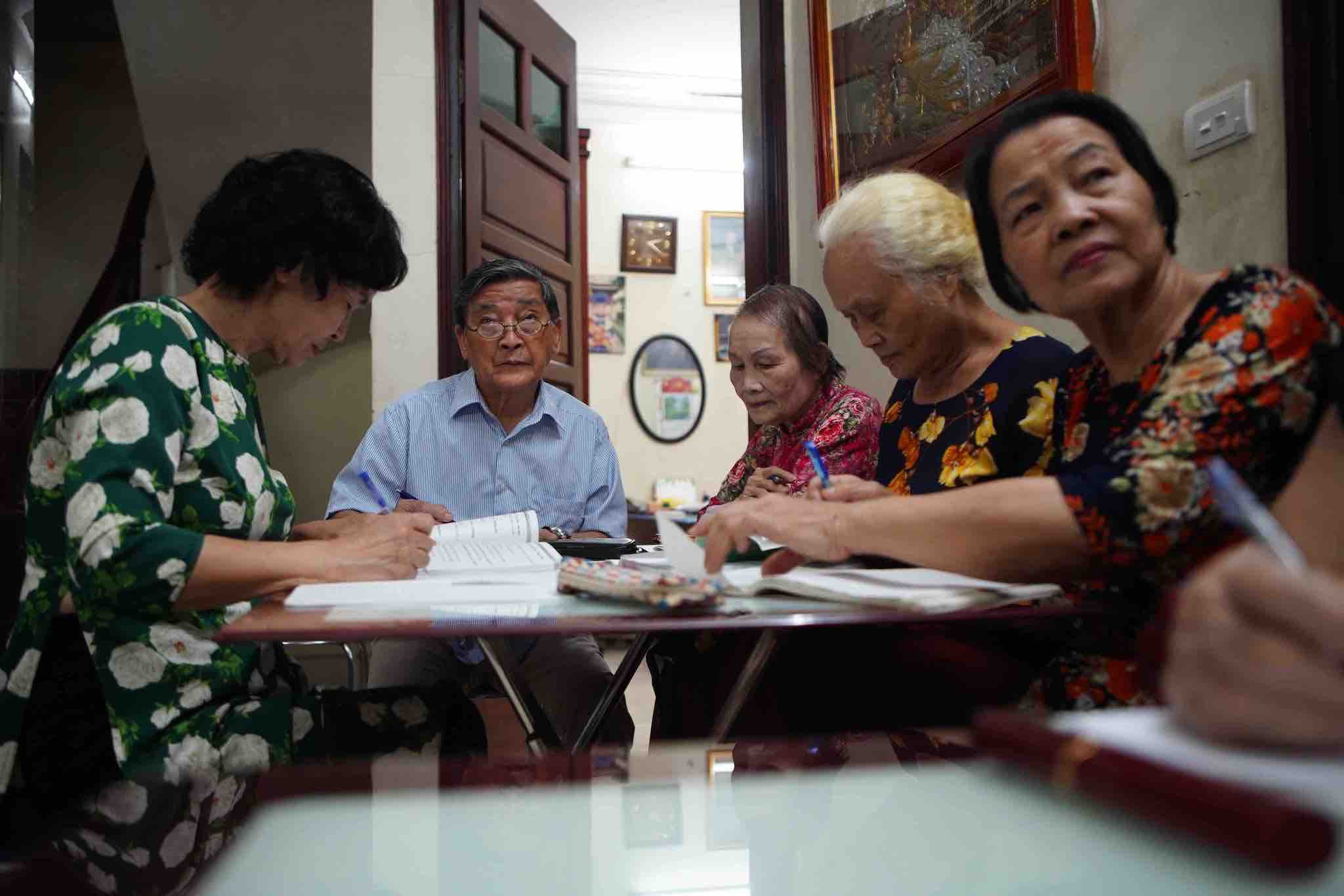 Located in a small alley on Kim Nguu Street, this class opens once a week.Most of the students are retired.Women come to class in ao dai (Vietnamese traditional gown) as a way to show their respect to teachers and remind them of their days in school.Their eagerness to learn as well as the lively atmosphere in the classroom impresses young people.Although the acquisition of vocabulary is limited, teachers are very enthusiastic.Some days the class lasts for over 2 hours, but students learn a few words.This is not only a classroom but also a family.An older man who lives nearly 10km from the classroom has never skipped a class.The students diligently take notes throughout the lesson.Mrs. Nguyen Van Anh, 82, is the only male student in the class. He said the class is special in that free books are provided, and the teacher enthusiastically helps retirees like him and his wife find joy in their old age.The free English classes were founded by Venerable Thich Chan Quang in 2019 in many provinces and cities across the country, with the hope of providing joy, motivation, and a sense of community.