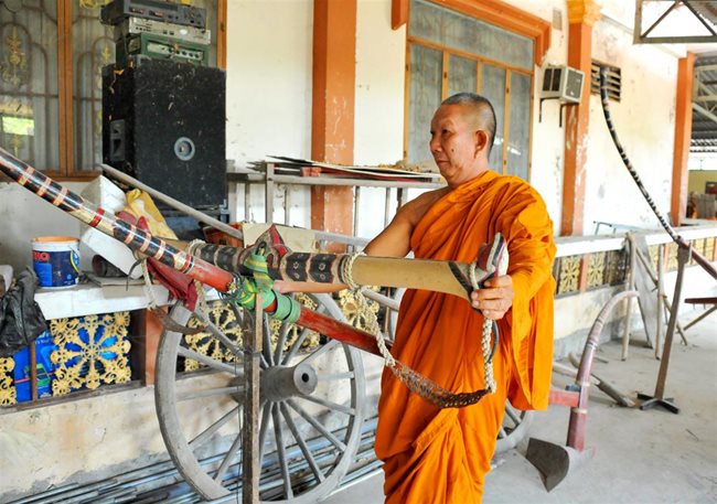 Chau Son Hy, the abbot of Sa Lon Pagoda in Seven Mountains region in An Giang Province, was able to collect old agricultural tools used by the local Khmer people.