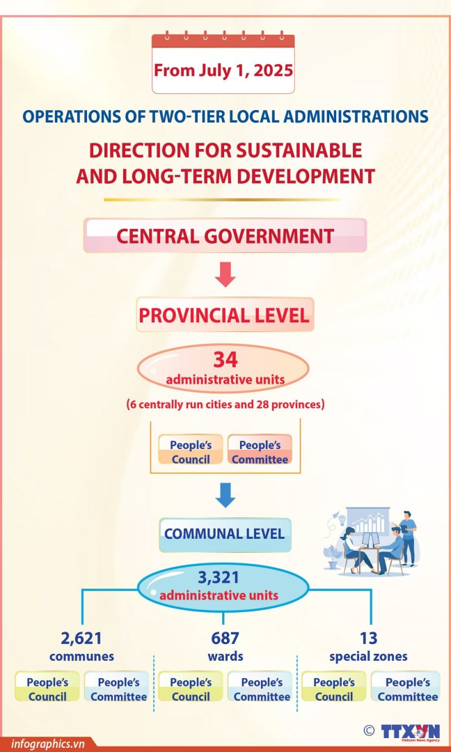 “With these thorough preparations, we are confident that from July, the two-tier local government system in 34 provinces and centrally-run cities, and 3,321 commune-level administrative units will operate smoothly and without disruption,” Long said.