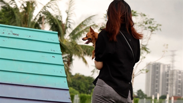 | A woman holds her dog in a dog park in Yên Sở Park of Hà Nội's Hoàng Mai District. VNS Photo |