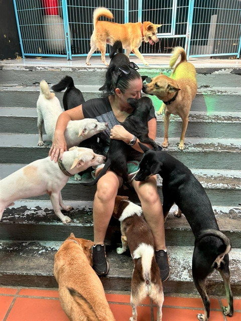 | Elizabeth and dogs in her shelter. Photo courtesy of Laws for Paws Vietnam |