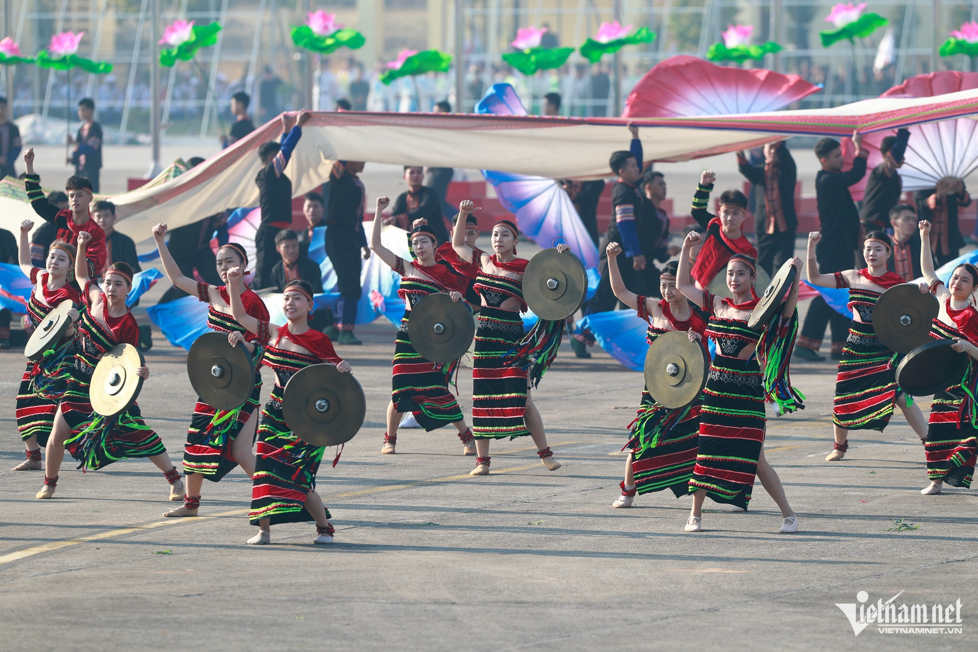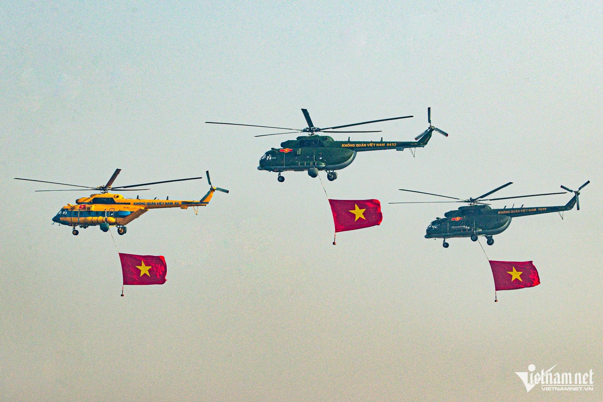 Mi Helicopters: Seven Mi helicopters, departing from Hoa Lac Airport, carried Vietnam's national flag and the exhibition's symbolic banner. The helicopters performed synchronized passes over the main stage.