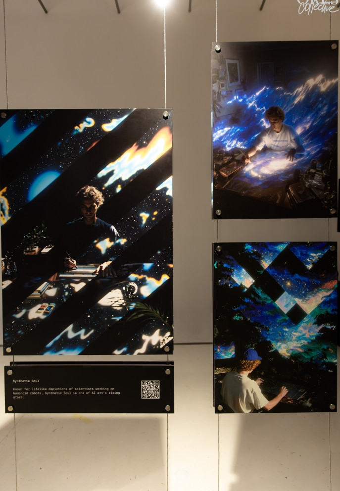 The exhibition features more than 60 works by over 25 standout international AI artists, including names like Miboso, Dogan Ural, Archireum, Mac Baconai, James Yeung, Goo Vision, Synthetic Soul, and Dan Pradana.