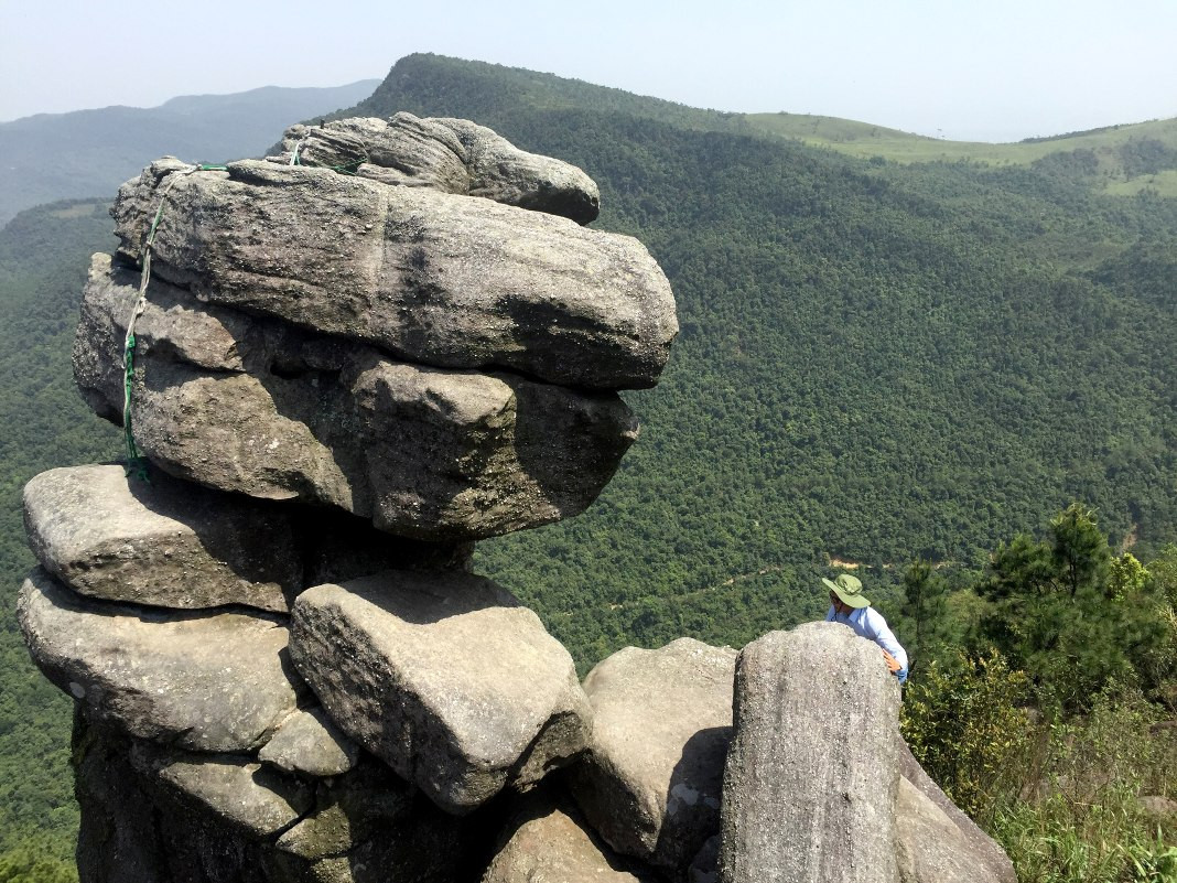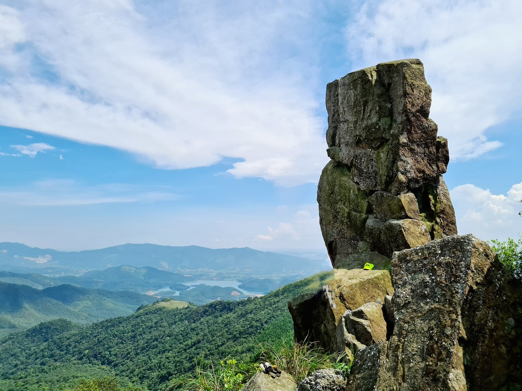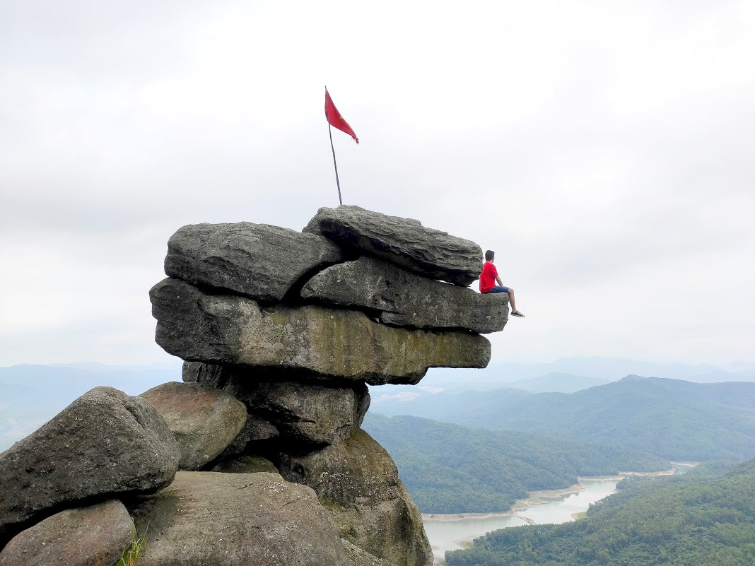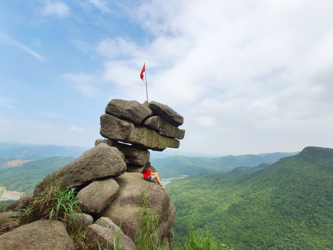 The first one is in Bang Ca Commune, Hoanh Bo District. At nearly 500 meters above sea level, five large rocks are stacked on top of each other. They protrude from the mountainside, creating a fantastic picture. The craggy cliff has so far inspired tourists to explore.