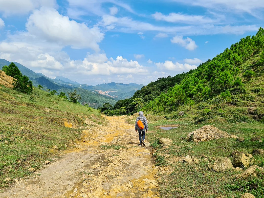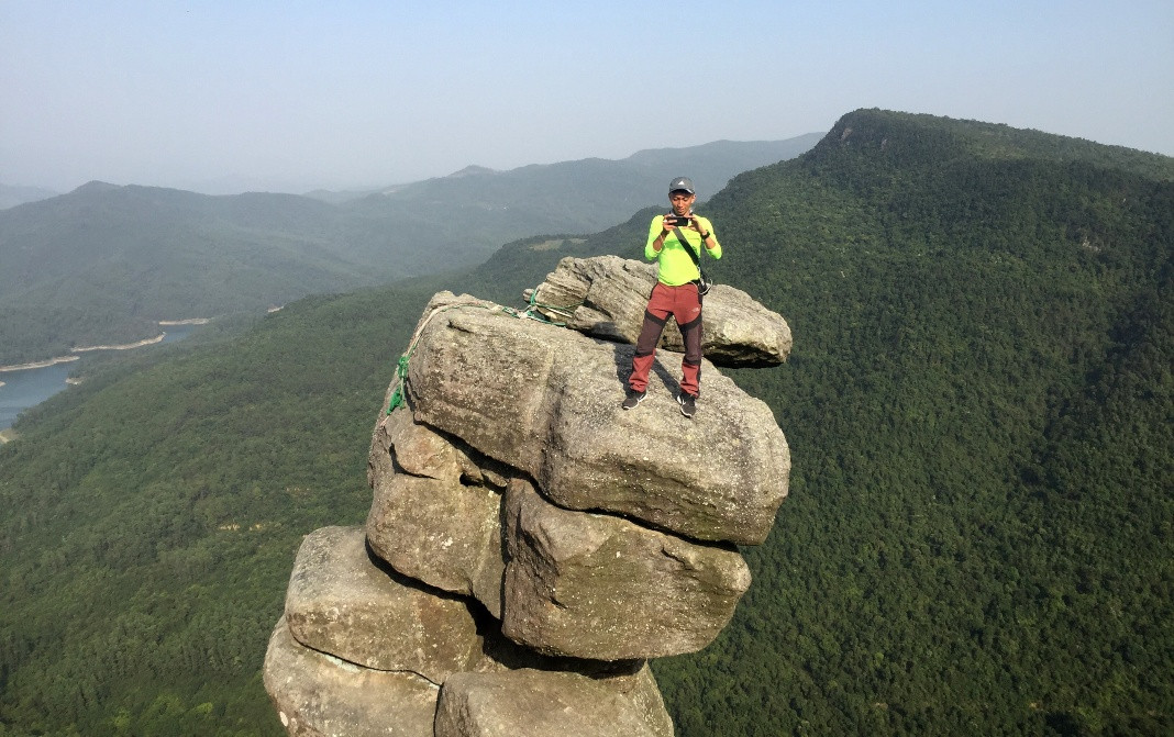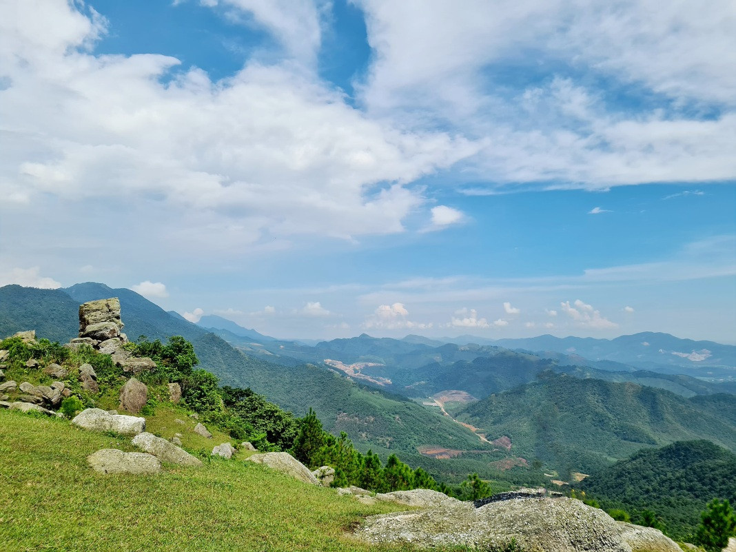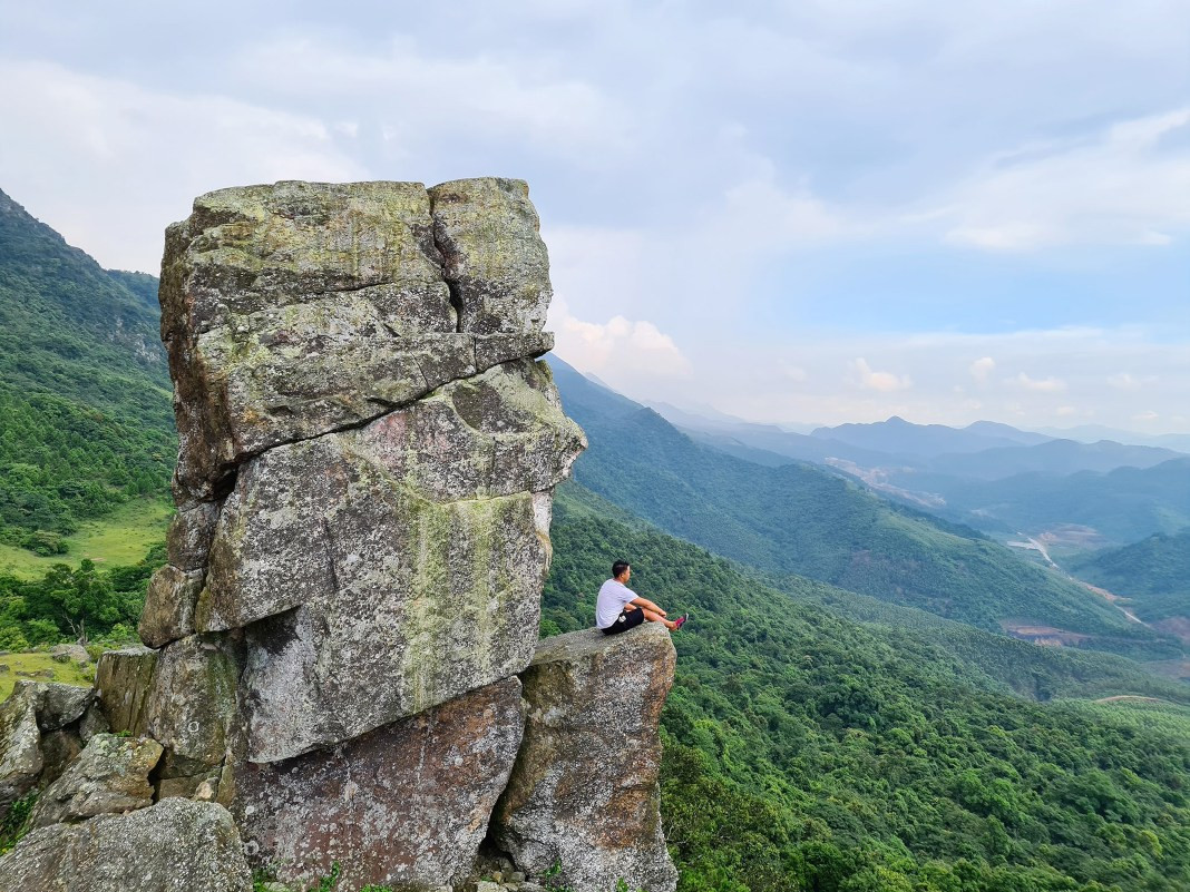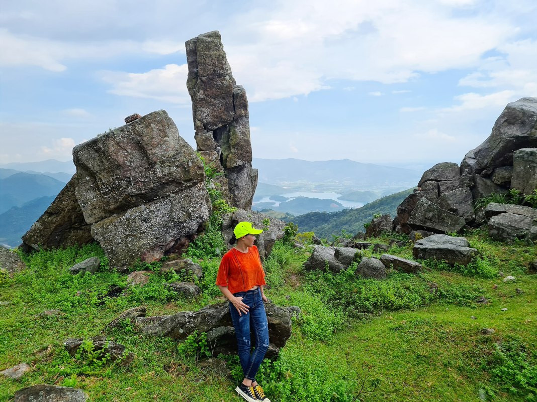 The first one is in Bang Ca Commune, Hoanh Bo District. At nearly 500 meters above sea level, five large rocks are stacked on top of each other. They protrude from the mountainside, creating a fantastic picture. The craggy cliff has so far inspired tourists to explore.