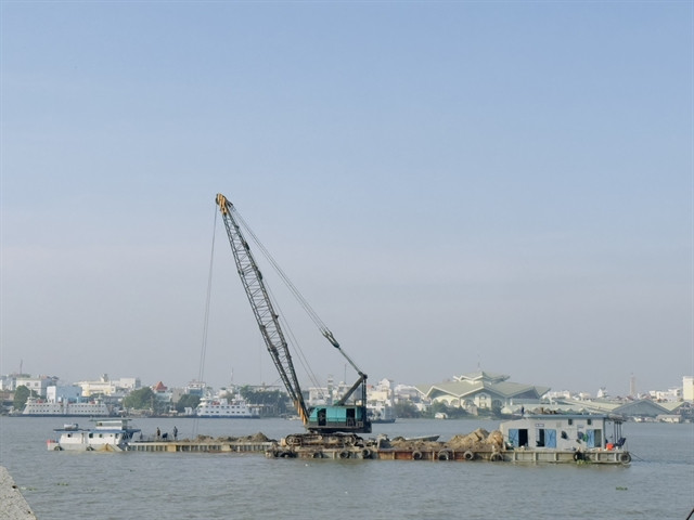 | A sand mining station on Hậu River, Long Xuyên City in the Mekong Delta province of An Giang. — VNA/VNS Photo |