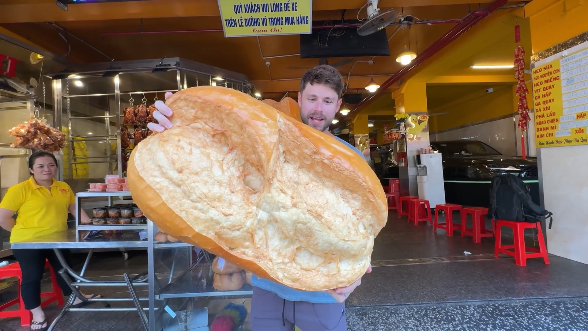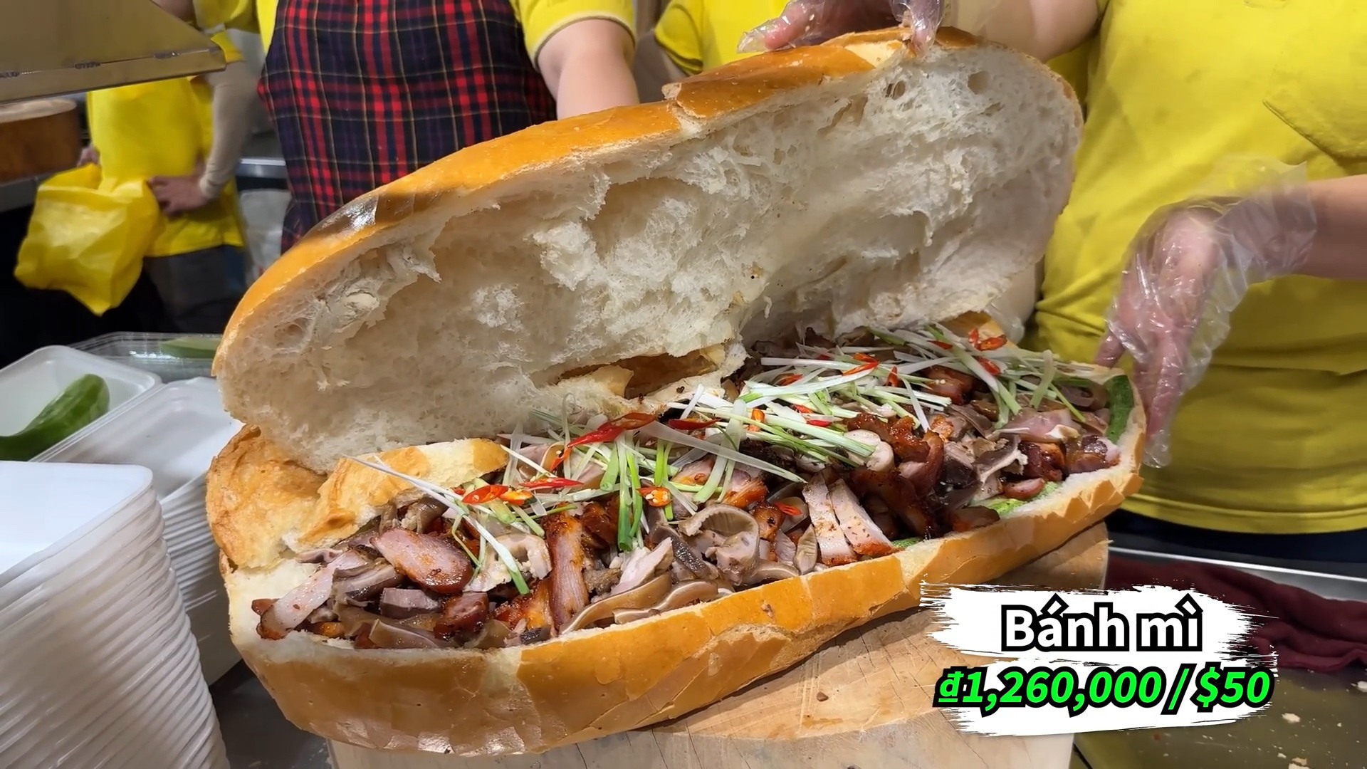 In a recent video that garnered widespread attention, Max unveiled a culinary marvel: a mammoth sandwich priced at over 1.2 million VND. His journey led him to a bustling roast meat shop in Tan Binh district, where a sandwich described as "larger than life" beckoned him inside.