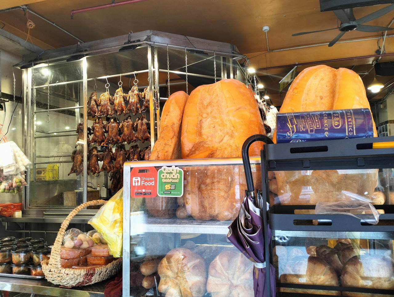 The shop, specializing in roast duck and roast pork, has been a staple in Tan Binh for more than two decades. The enormous sandwiches, imported from a family-owned factory, are displayed daily across four locations, ensuring freshness and quality.