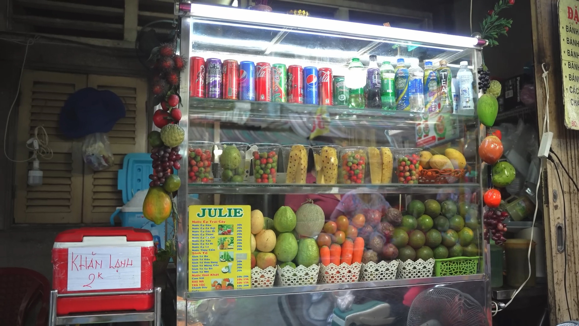 Dustin also bought a cool glass of sugarcane juice. He said that when coming to Vietnam, tourists should not ignore sugarcane juice, as it is very delicious and addictive. At Ho Thi Ky market, visitors can easily find drinks priced from 15,000 - 20,000 VND such as smoothies, peach tea, fruit juice.