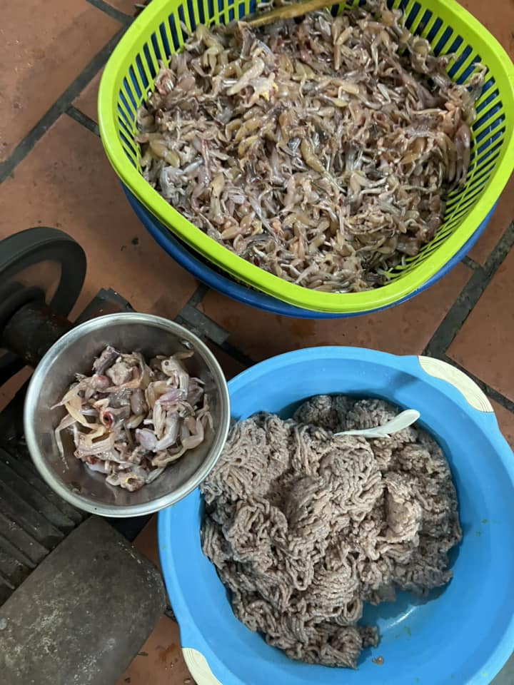 According to Ms. Hong, high-quality fresh frogs are essential for an authentic cha nhai. Since the dish is available year-round, she sources frogs from different regions depending on the season: