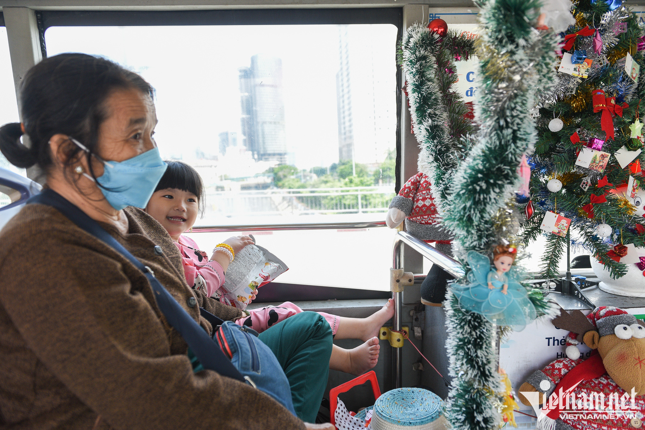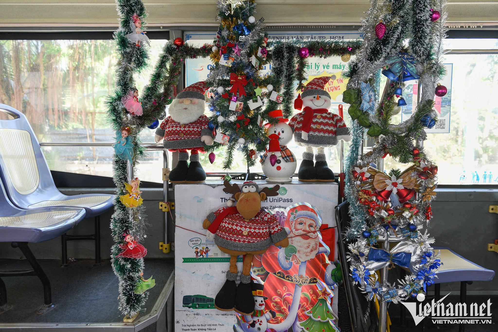 These days, the bus running from Ben Thanh to Long Kieng Bridge (HCM City) of Huy and his wife (and bus attendant Dang Cam Tu), impresses passengers with brilliant Christmas decorations.