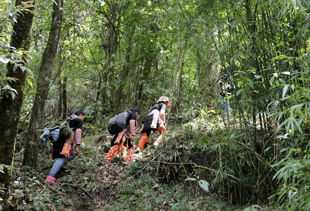 | It takes 3 to 4 hours for locals to trek up the mountains and reach the ancient tea trees that grow nearly 2,000 metres above sea level. VNA/VNS Photo Quý Trung |