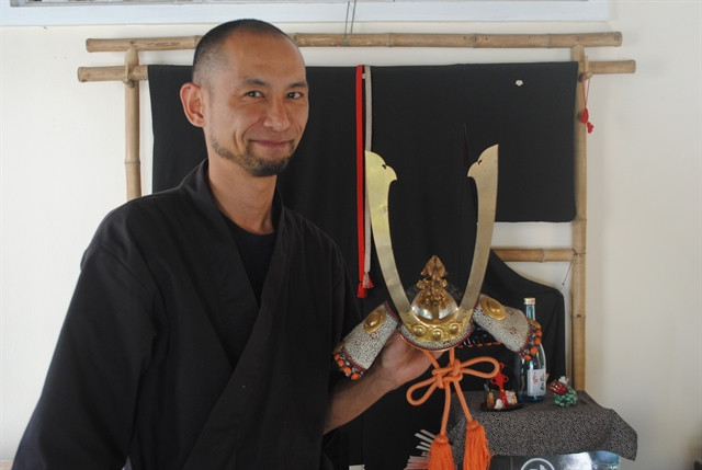 | Genta Miyagawa, a Japanese man living in Hội An, introduces a symbol of the Samurai at his restaurant Samurai Kichen. VNS Photo Công Thành |