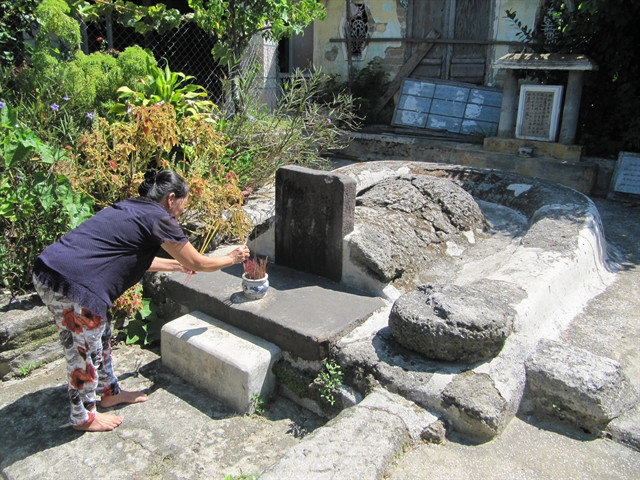| A woman visits an ancient tomb of a Japanese businessman in Cẩm Châu Commune of Hội An. The three oldest Japanese tombs have been preserved by local people in the town for centuries. VNS Photo Công Thành |