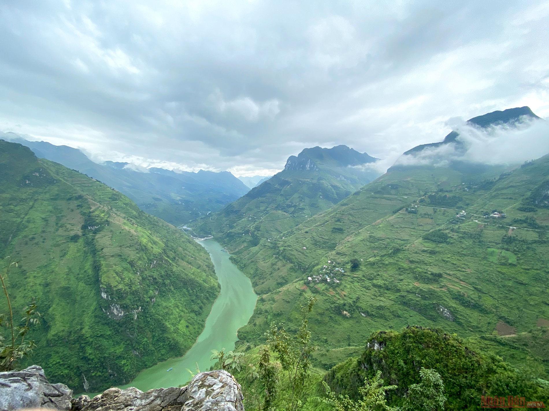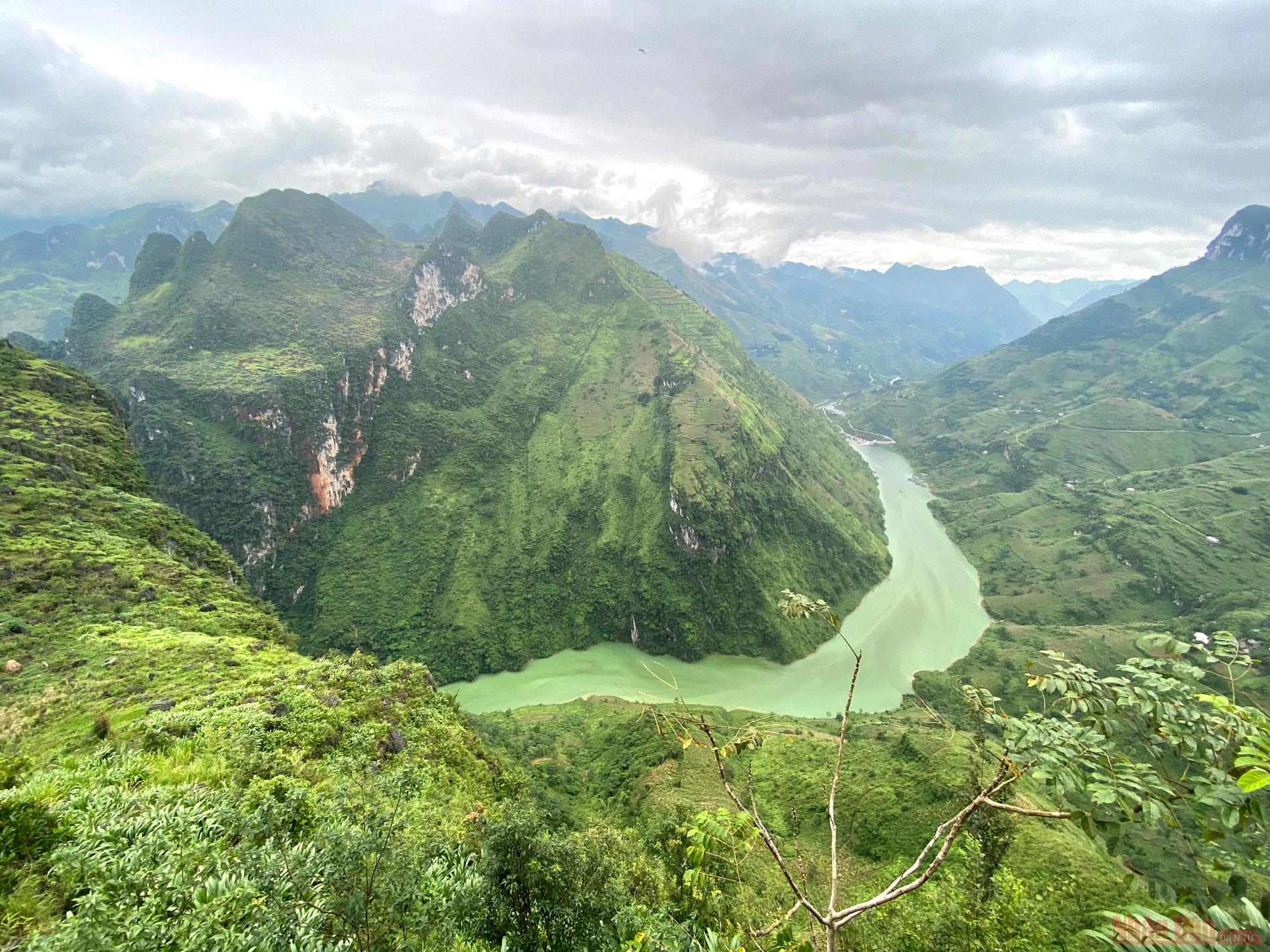 Nho Que River as seen from a corner of the road to Ta Lang Village, Lai Lung Commune, Meo Vac District. The river stands out from a steep winding road, which is considered to be a challenge for anyone who wants to claim it as a "rider".