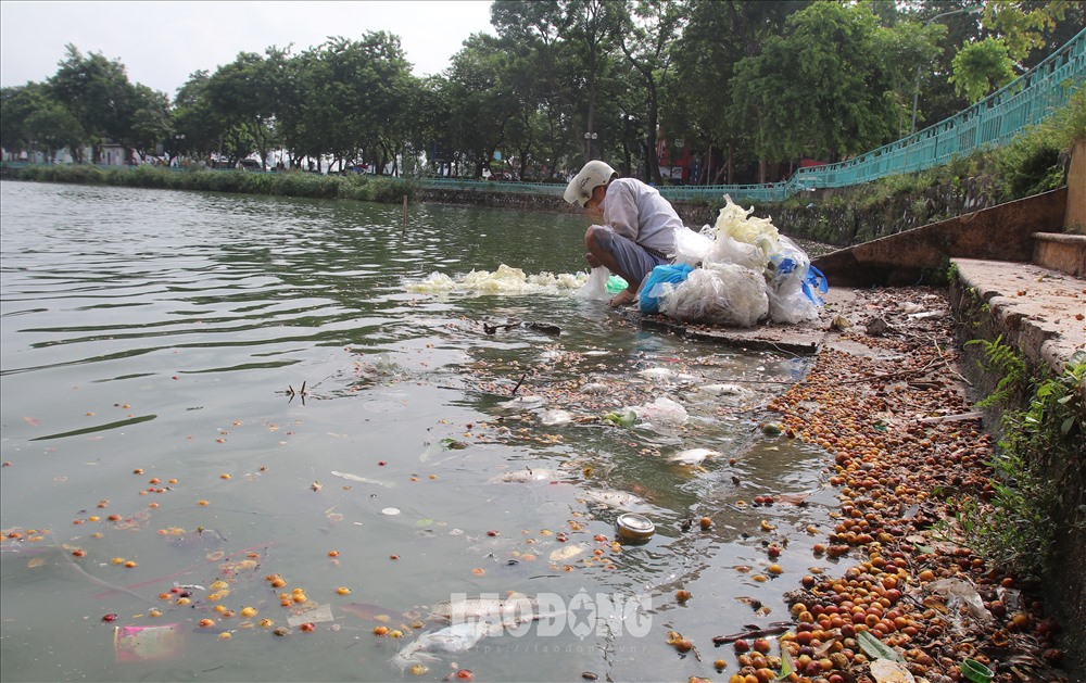 According to a representative from Hanoi Sewerage and Drainage Company, the mass fish deaths would be due to sudden weather changes with hot weather during the daytime and heavy rains at night and during the early morning.