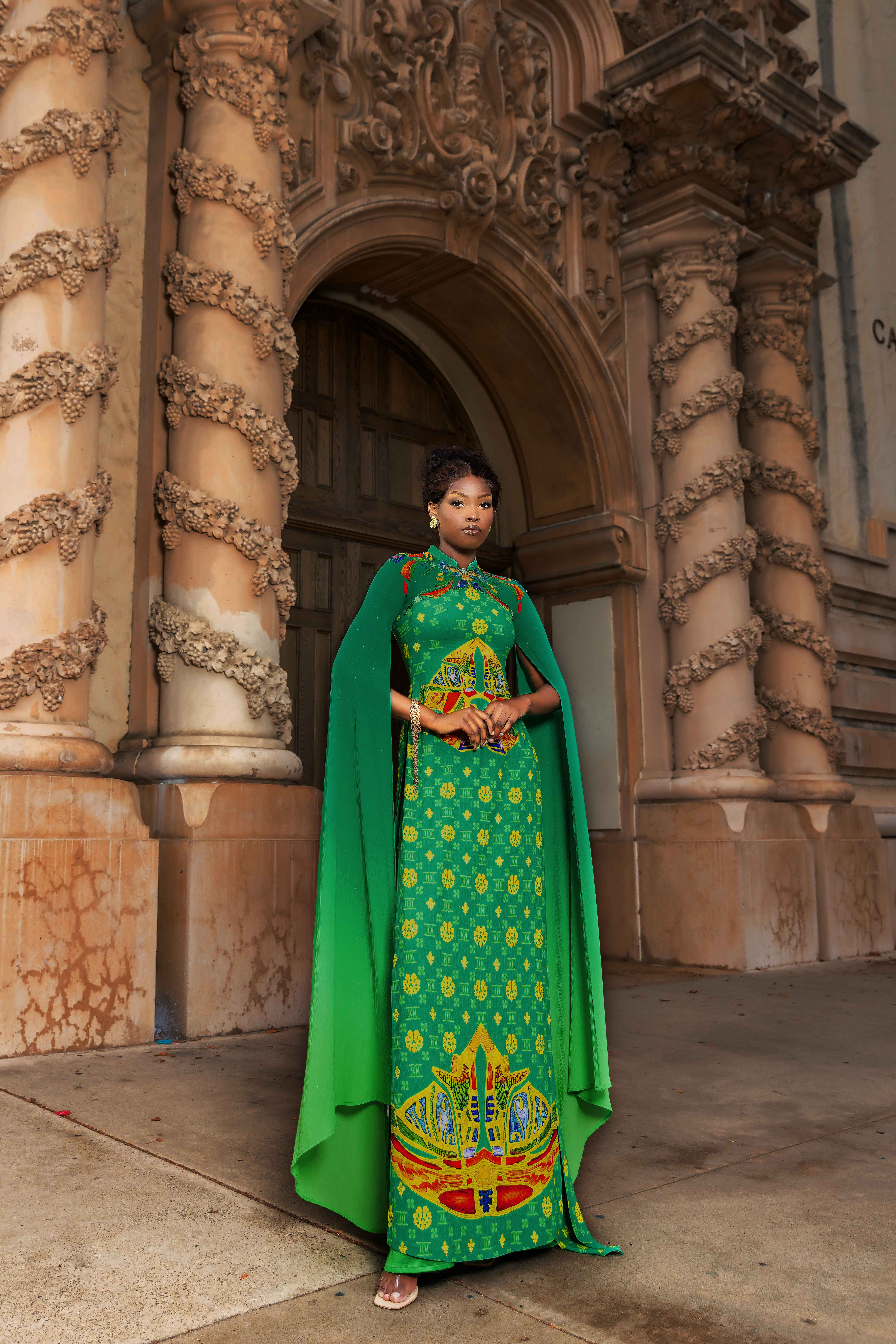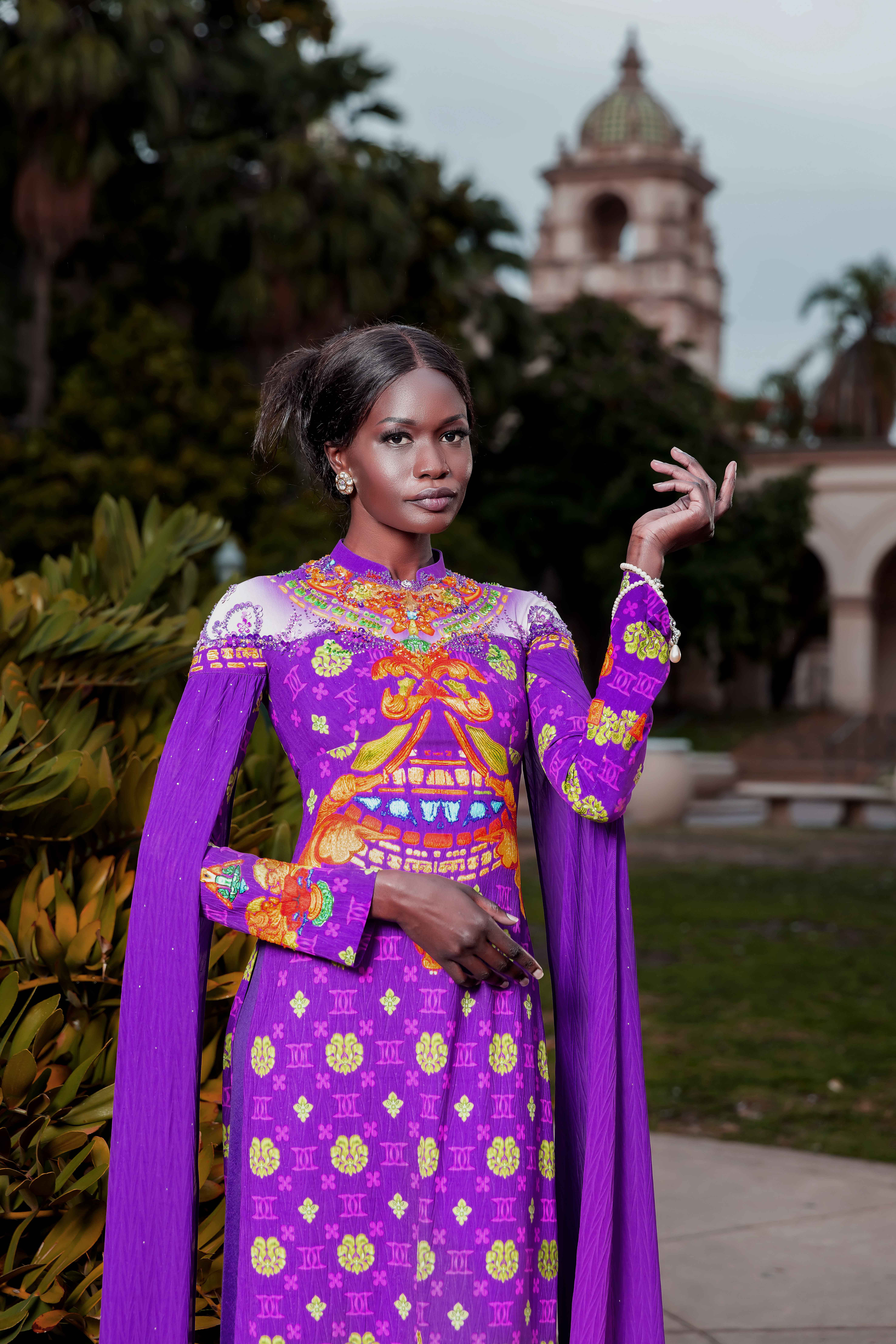 Hoai Nam’s Ao Dai designs use high-quality materials, treated with modern technology in the style of Mosaic art combined with aspects of traditional Vietnamese culture such as embroidery, inlaid gold, and inlay with metal and gems. The designer has transformed the traditional Vietnamese ao dai model into an artwork.