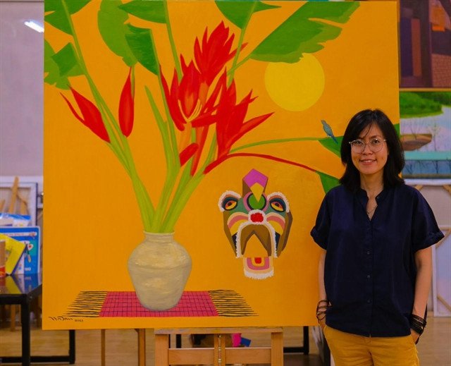 | Artist Nguyễn Ngọc Đan with her work. – Photo courtesy of the artist |