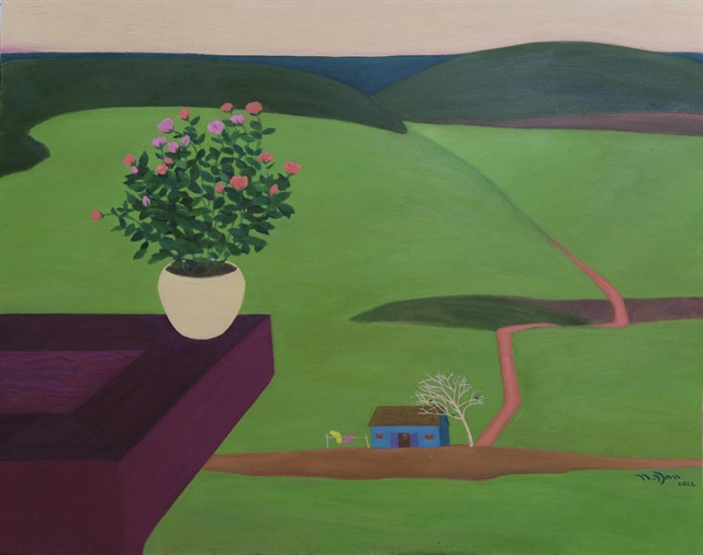 | Khoảng cách (distance), an oil painting by Artist Nguyễn Ngọc Đan in The Still Life series: Birds, Flowers, Fish, and Leaves. – Photo courtesy of the artist |
