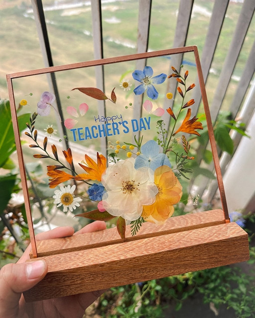 | A dried flower frame to celebrate Teachers' Day. — Photo courtesy of Thủy |